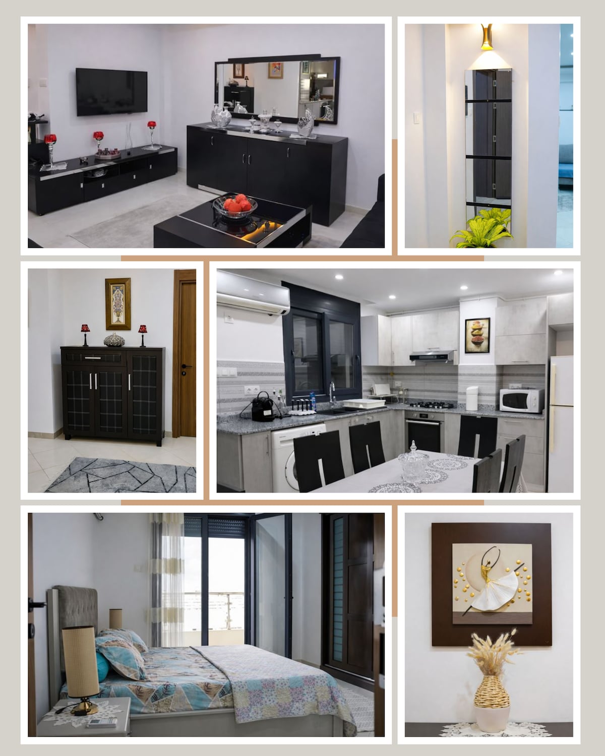 這個房源是獨一無二的現代風格! 公寓內有酒店感覺,小型兒童庭院和地下停車位,可經由電梯直接前往您的公寓,大樓非常安全,有安全攝影機和幾個保全,公寓也非常好,配備所有餐具、Nespresso咖啡機和許多其他東西... 請注意:晚上10點後入住需支付5000da稅費