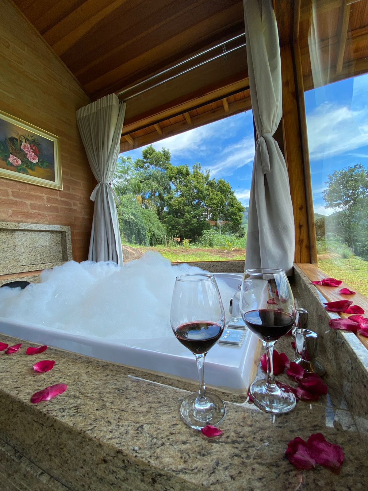 Chalé romântico com hidromassagem e café