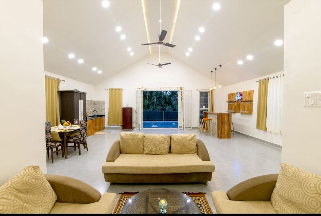 豪華5 BHK豪華空調別墅,配有加大雙人床、寬敞的客廳,可接待大家庭和團體入住。最多可容納 20 位房客,包括兒童。所有臥室均設有大型浴室+ 2間額外浴室。別墅有私人泳池+花園,有美麗的觀賞花卉植物和果樹、寬敞的開放式草坪和大型涼亭。提供桌上足球、卡龍、西洋棋、T-桌上足球等室內遊戲,以及電視和TataSky。