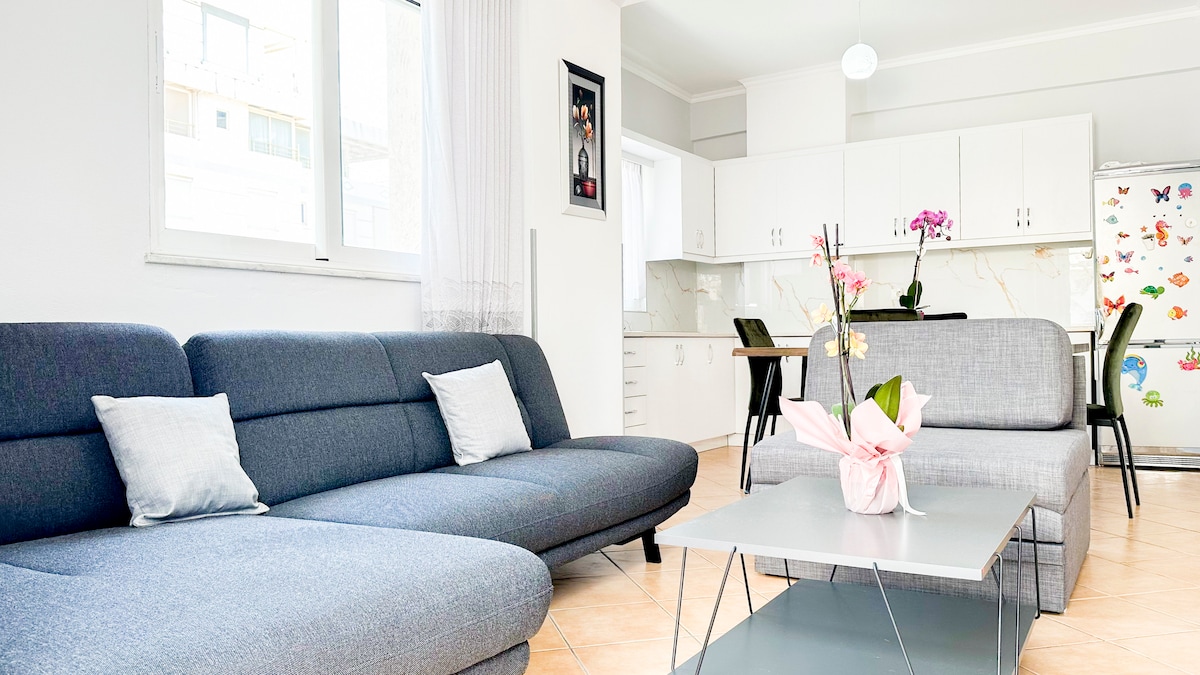 A lovely, newly renovated apartment with a capacity up to 3 people located near the portside of the beautiful Saranda. The apartment provides easy access to the city center- a 5 minute walk, a distance of 20m from some of the city's well-known beaches and also nearby ATMs, tourist information offices and public transport to some must-be destinations while visiting Saranda, such as Ksamil or the Archeological Park of Butrint.