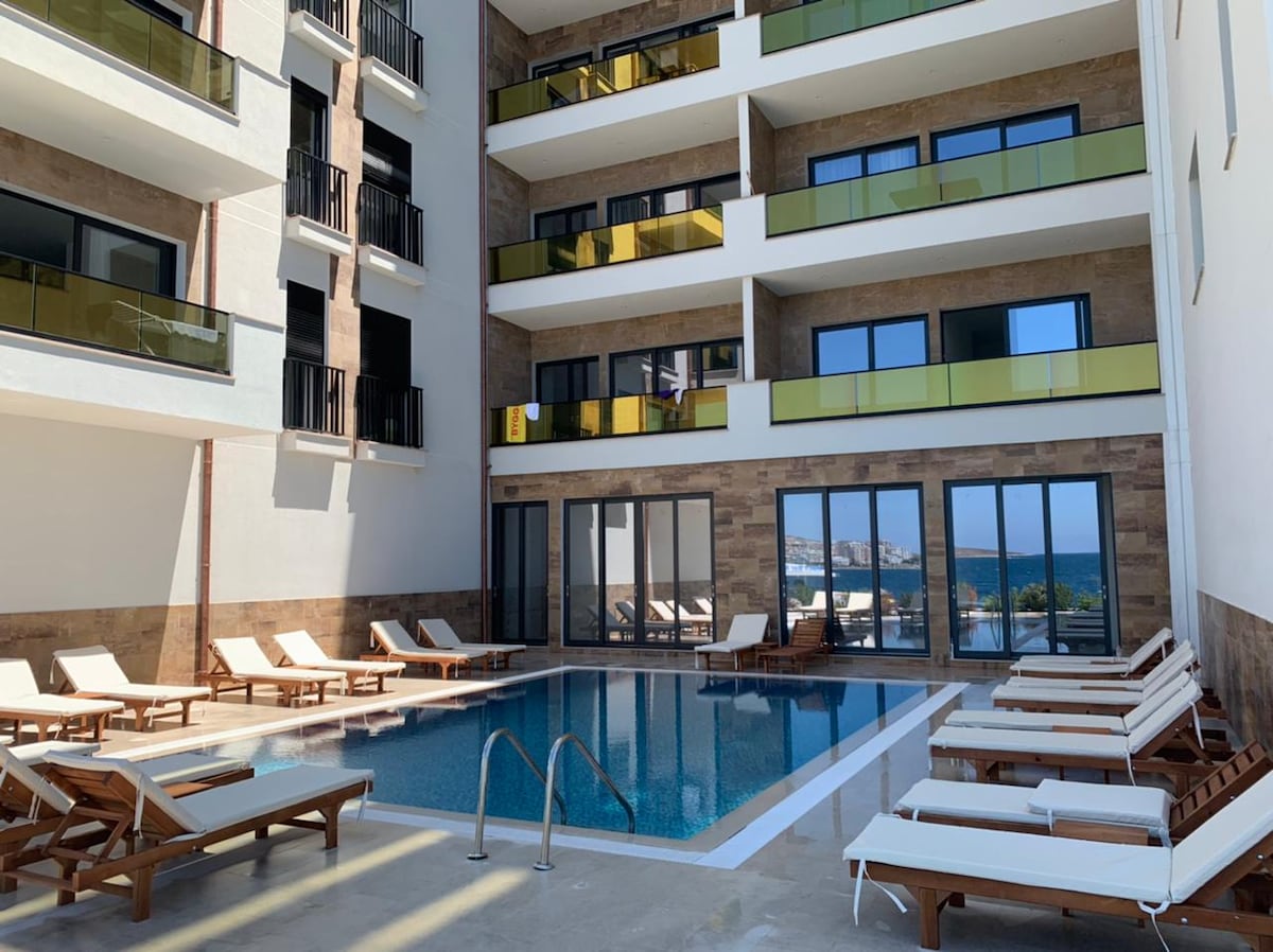 海濱豪華公寓,坐落在阿爾巴尼亞薩蘭達市中心。 由於地處中心位置,您可以輕鬆前往度過難忘假期所需的所有設施,包括餐廳、咖啡廳和商店。 公寓設計精美,設備齊全,配備了您所需的一切,讓您感受像回到家一般的舒適。您會發現舒適的客廳、設備齊全的廚房、放鬆的浴室和寬敞的陽臺,您可以在這裡欣賞大海和城市的壯麗景色。