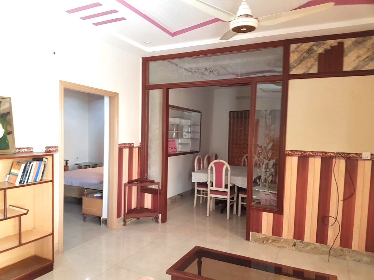 its 5star Ground floor Apartment located at Lush green area on Lower canal road Faisalabad Best for Families, business travelers & groups Its very close to all attractions like kohinoor , D.ground and Lyalpur Galleria. Gated security 24 hrs its on Ground floor with all living facilities 2 Air conditioned rooms with attached baths hot water 1 Living Levish Fully operational kitchen 🌙 Ramzan special wifi+ free Netflix Laundry area with automatic washing machine Food delivery facilities nearby