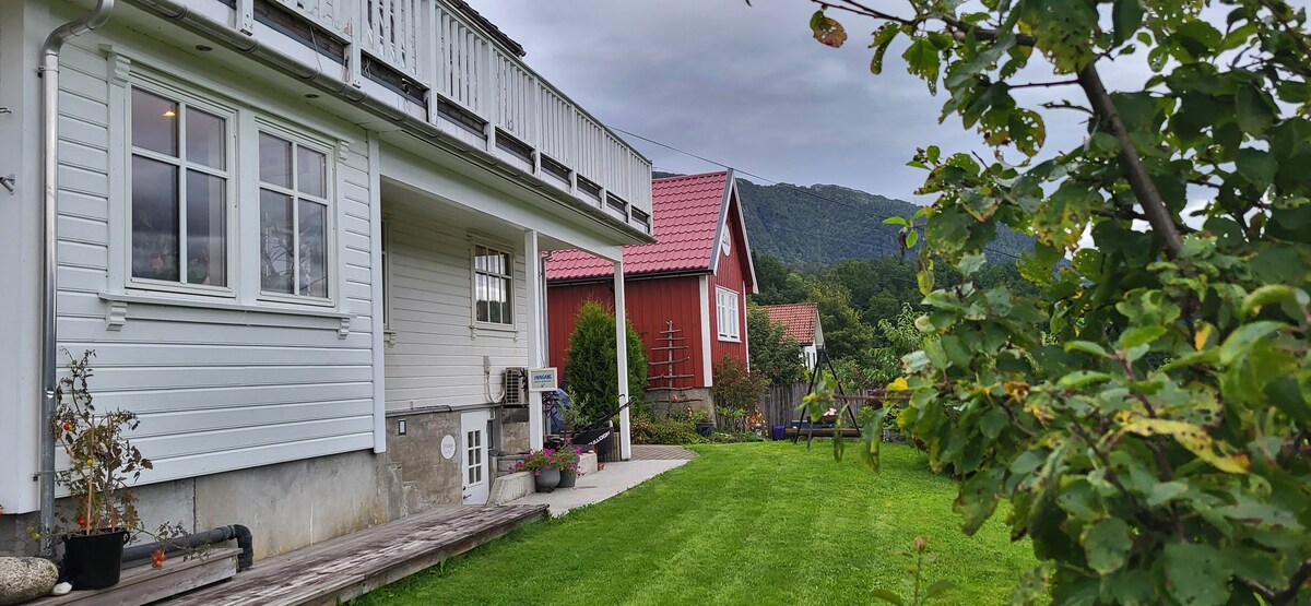 Flott utsikt over Saudafjorden og fjellene rundt. 🌄 Her kan du hvile øynene på fin natur, gå turer, benytte deg av nærheten til sentrum med ulike aktiviteter og lokale butikker. Huset ligger i et rolig nabolag.