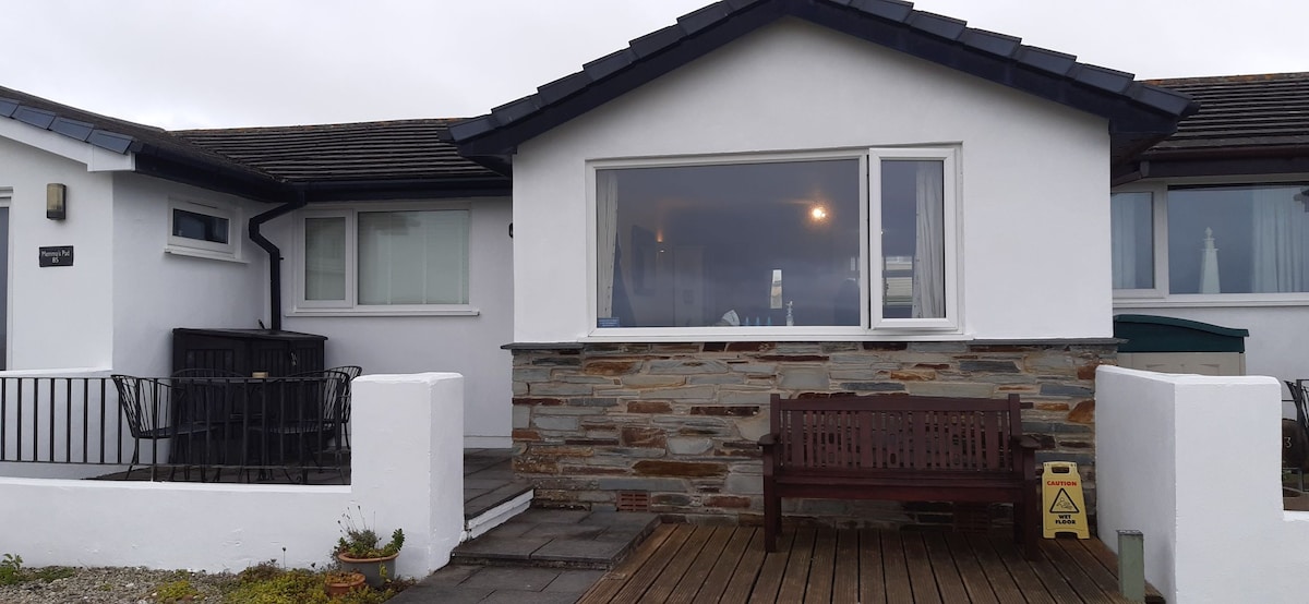 The Bungalow benefits from being only 4 miles from the beautiful town of Bude, but is in a quiet area called Widemouth Bay with arguably the best views in NorthCornwall. and stunning views of the rolling waves and 10 minutes walk to the beach. There ia a pub/restaurant 5 minutes walk away and the property has free parking, a 2 minute walk to the bungalow. There is also a newly refurbished indoor heated swimming pool with steam room, gymnasium and games room all of which are free to guests.