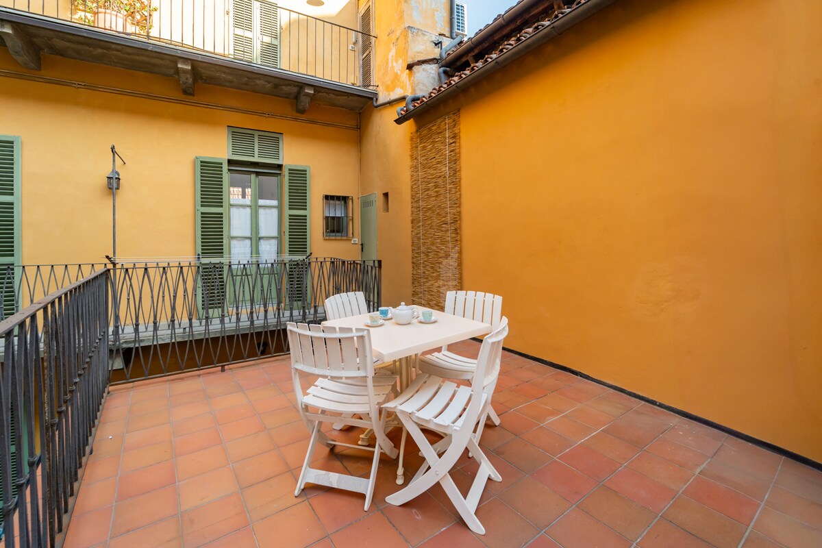 Appartamento indipendente nel centro storico di Savigliano, costituito da cucina, camera da letto, antibagno, bagno e terrazzo. L'appartamento è dotato di wi-fi, TV a schermo piatto, lavatrice, cucina attrezzata e arredamento da esterno sul terrazzo. E' disponibile un divano letto matrimoniale. Gli ospiti posso raggiungere comodamente a piedi la centralissima Piazza Santarosa nel cuore della città con i suoi bar, ristoranti e negozi.