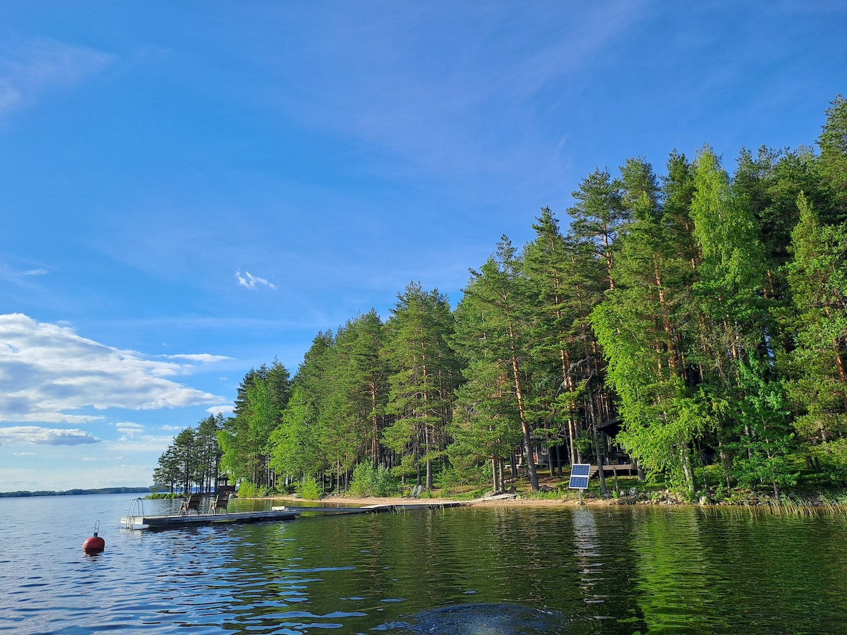 MOST POPULAR HOLIDAY DESTINATION IN THE SAIMAA LAKE DISTRICT Dear Finland Visitor, come and enjoy some extraordinary holidays in our worldwide unique, luxuriously furnished KELO Log Cabin made of precious silver pine. The cabin with its own sauna and jetty is situated right at the shore of Finland's clearest lake!