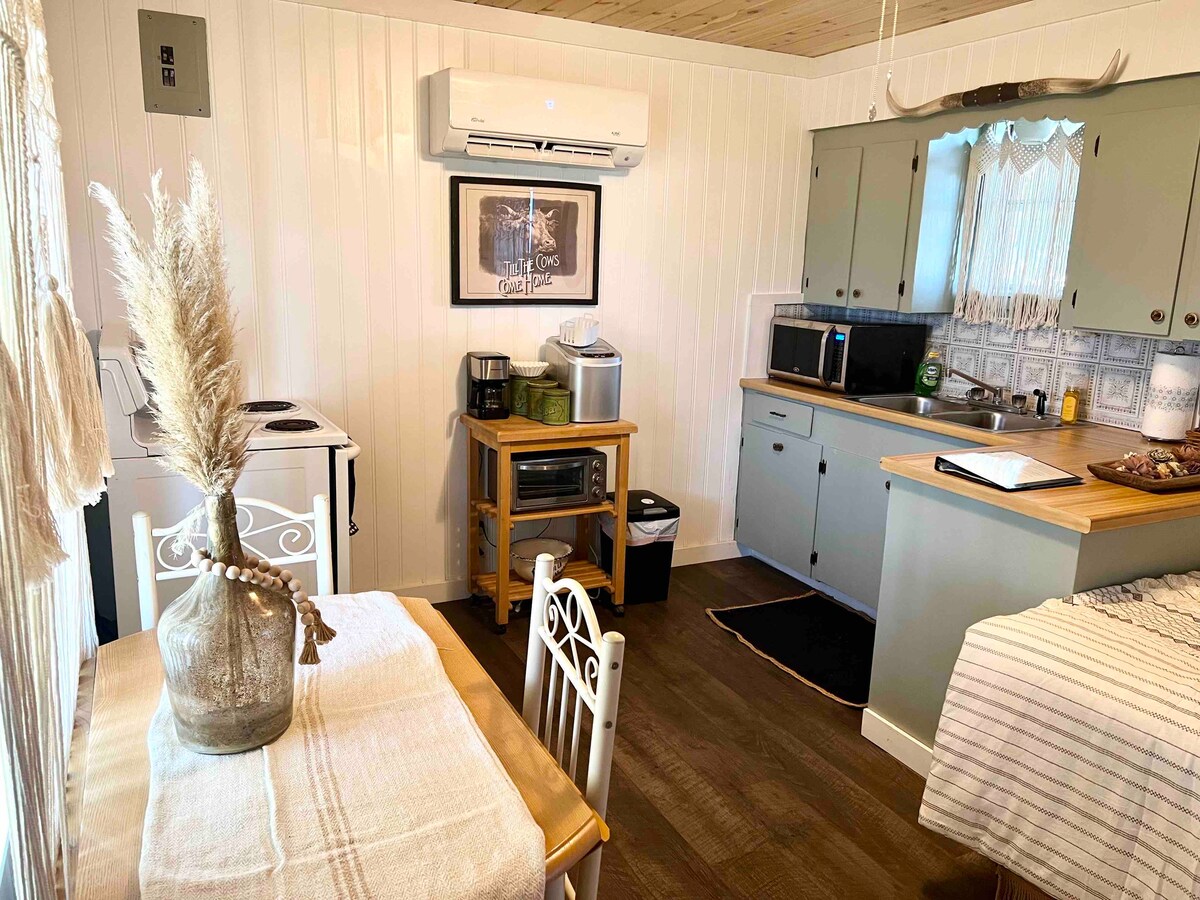 "Tranquility Three Rivers Ranch" is a quiet 800 sf cabin for 2 for those getaway vacays. Enjoy country living on 55 grazing and wooded acres. It comes with a utensil stocked kitchen for cooking and an open floor plan. Large flat screen Tv's in both living room and bedroom. Stream with reliable starlink. Feel free to bring your tackle and fish 3 stocked ponds. Hike anywhere on the property or relax and watch wildlife or grazing horses. Bring carrots!