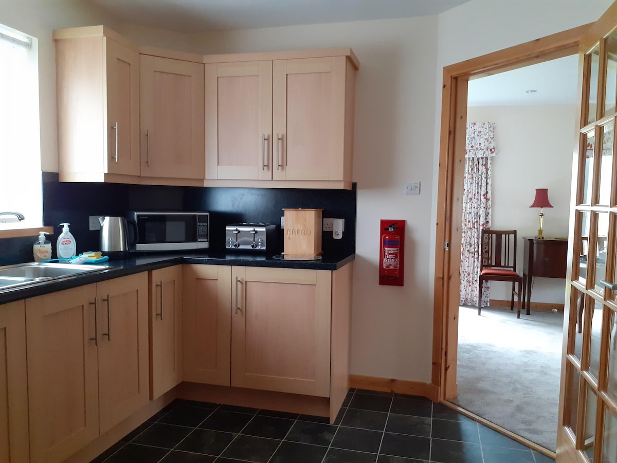 新翻修、設備齊全的一樓自炊式公寓,位於柯克沃爾市中心,步行幾分鐘即可抵達所有便利設施,包括港口、餐廳、商店和聖馬格努斯大教堂。 房源共有2間臥室,一間特大床臥室,配有套房浴室和一間雙人臥室。配有開放式廚房/用餐/起居空間和配有淋浴間的衛浴。房客可以獨自使用公寓和公寓內的所有電器,以及自己的外部空間。