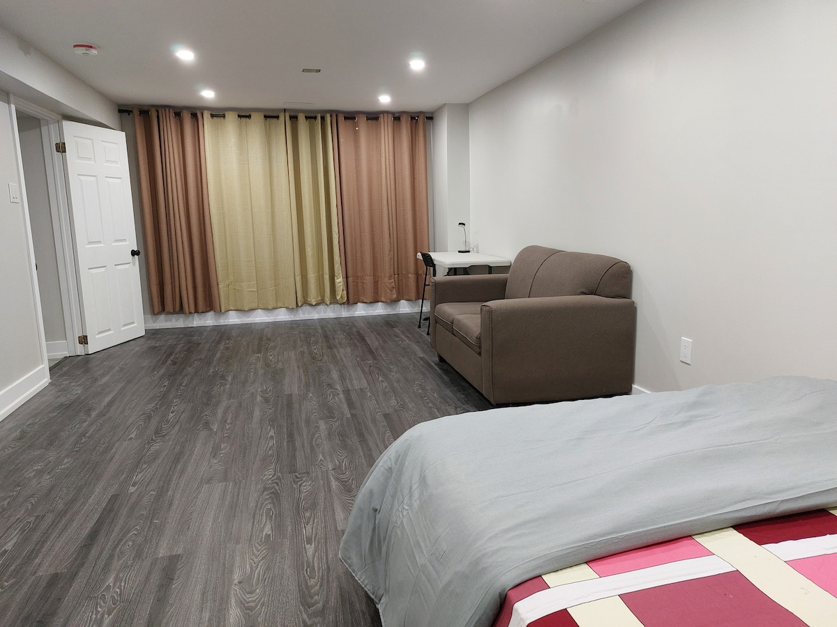 靠近士嘉堡鎮中心、Eglinton GO火車、當地醫院(車程均少於8分鐘)、VIA鐵路(13分鐘),TTC巴士(步行4分鐘)。 獨立入口,配有電子鎖,通往整個地下室,中間房間有5扇大窗戶( 1扇為消防出口)。 包括淋浴間、冰箱、客廳配有L型沙發和電視(Netflix/Disney/Prime/Spotify)、書桌、水槽和洗碗機。 在這個遠離家鄉的寧靜房源中與全家人一起放鬆身心。 如需更多資訊,請隨時與我聯絡。