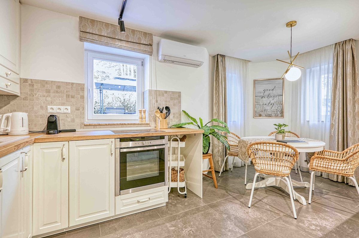 Willkommen in unserem Kellerstöckl. Umgeben von Weinbergen bietet die Region nicht nur ausgezeichnete Weine, sondern auch wohltuende Thermen. Gästen des Apartments Nr. 2 steht eine private Sauna gegen Aufpreis zur Verfügung. Ideal für Aktivurlauber: zahlreiche Wander- und Radwege laden zur Erkundung ein. Die Unterkunft verfügt über eine gut ausgestattete Küche, einen Wohnbereich und einen sonnigen Außenbereich mit Blick auf die Weinberge. Entdecke die Thermen und den Flair der Weingärten!