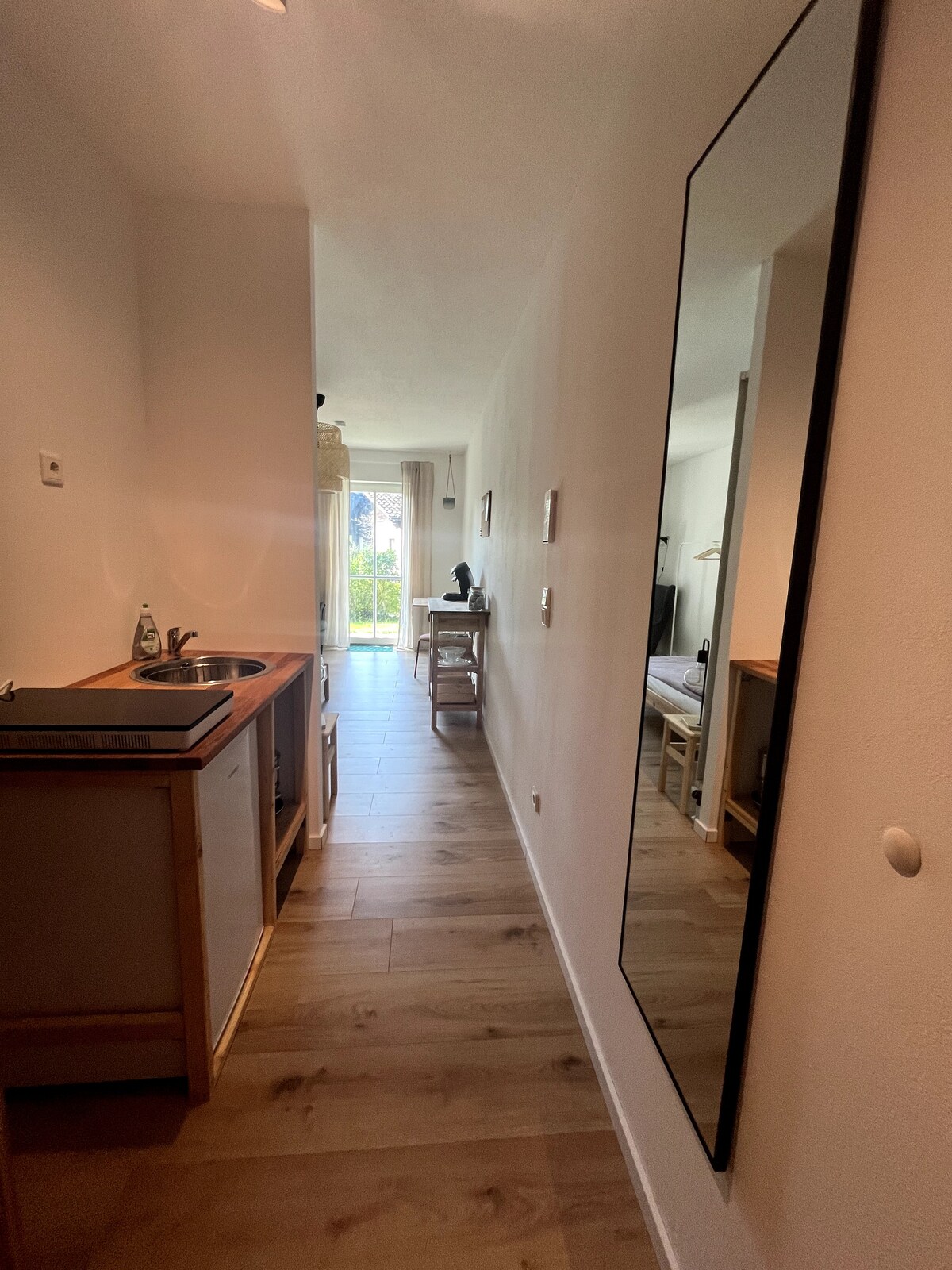 公寓位於一樓,有走廊、帶壁爐的客廳和可拉伸為雙人床的沙發床、帶雙人床的臥室(也可單獨調整)、廚房和浴室。 公寓配備齊全。提供Wi-Fi、電視。 位於森林邊緣的安靜位置,距離多瑙河畔的帕紹和維爾斯霍芬約20公里。有停車位。適合技工、外勤人員和短期度假者。 我們提供前往 10 公里外的普爾曼城 (Pullmanncity) 的廉價接駁服務