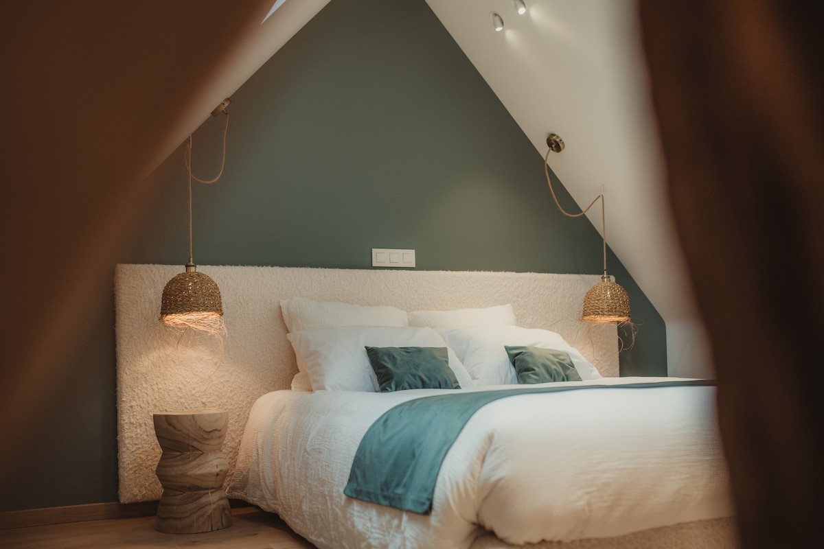 位於河邊,175 平方公尺的豪華住宅,坐落在一個有特色的公園內有公園! 私人戶外空間(直接從公寓進出)非常漂亮,配有按摩浴缸、烤肉、休息室和戶外桌子。 室內桑拿 非常適合尋求隱私的夫婦,可以在此放鬆身心,探索該地區的財富。 對於2人預訂,只能使用一間房間(除非額外收費30歐元/晚)。 距離 SNCB 車站 2 分鐘。