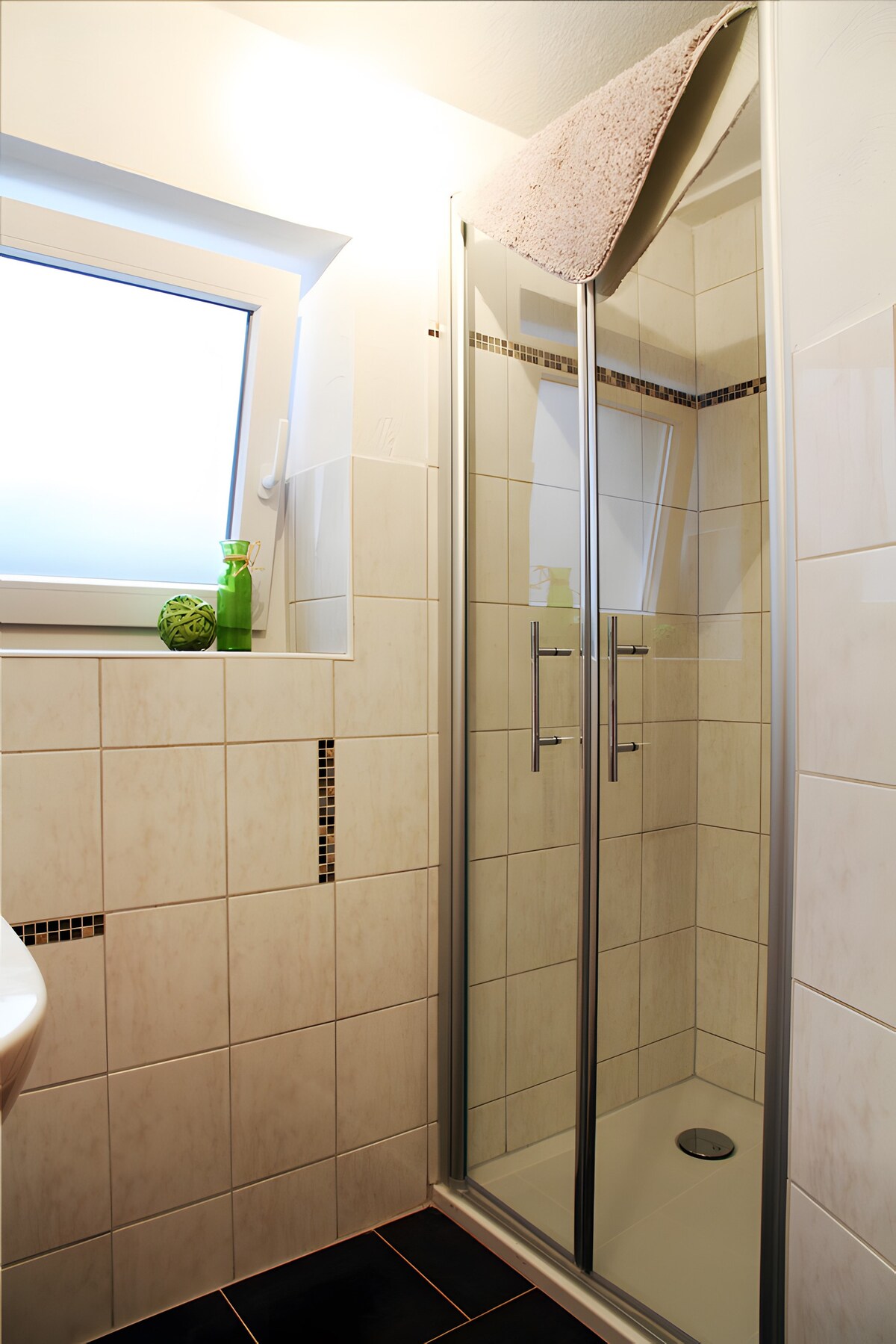 Room 3_Doppelzimmer mit Zustellbett Nr 3 in Neuenrade offers 20 sqm of space for up to 3 guests. You have 1 bedroom and 1 bathroom available during your stay. Private amenities include high-speed WiFi suitable for video calls, television, fan, dedicated workspace, and highchair for your convenience. Enjoy a relaxing holiday in the Sauerland. Our small guesthouse is centrally yet quietly located in the heart of Neuenrade and offers five single and double rooms.