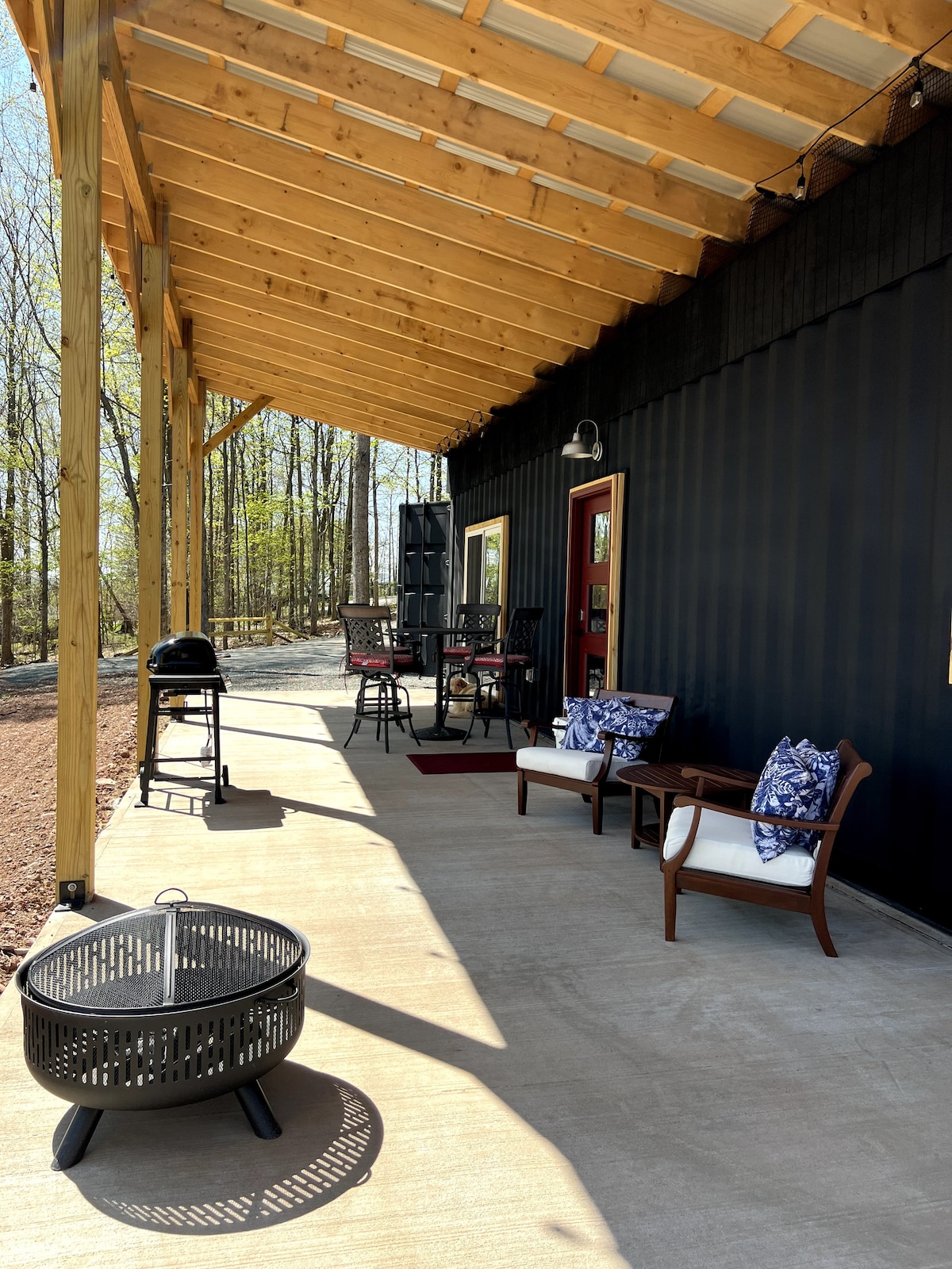 非常適合浪漫雙人度假。 獨特的空間,位於明亮的改裝貨櫃中,您會發現自己被奢華的裝飾所包圍,置身於僻靜的自然環境中。在私人門廊上放鬆身心,欣賞森林和山景,欣賞迷人的日出和日落。 享受在樹林間的戶外淋浴體驗。 在火坑旁度過浪漫的夜晚,同時觀賞星空。