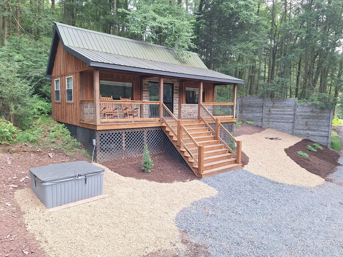 鐵杉嶺小木屋( Hemlock Ridge Cabin )坐落在僻靜的樹林中,位於賓夕法尼亞州中部的鬆溪( Pine Creek )岸邊,小溪距離小木屋一應俱全。 房源沿著小溪有小徑,是大自然愛好者的好地方! 有熱水浴缸、烤架和火坑可供享用。 室內設備齊全的廚房、標準雙人牀和配備DVD播放器的40英寸電視。 沒有WiFi和有限的手機服務。