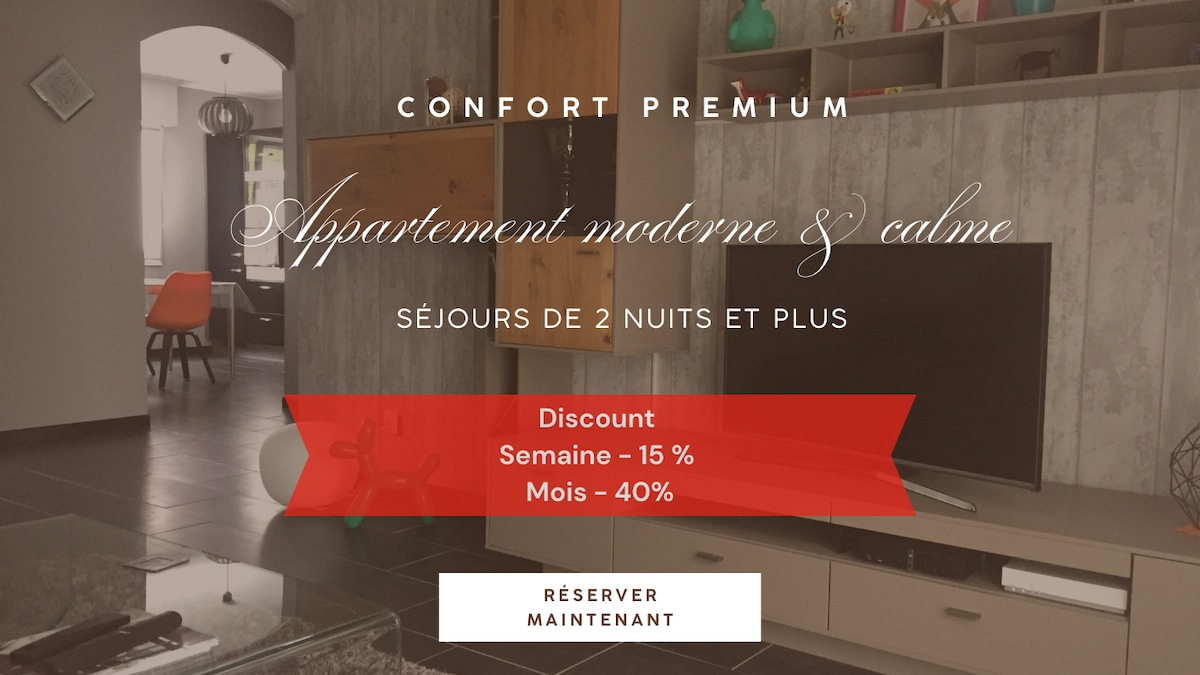 享受位置優越的迷人住宿,靠近步行街,您可以輕鬆停車。適合專業人士。 - 可使用 Netflix、智慧型電視、高速 WiFi - 大號床「皇后尺寸」160*200 - 酒吧/工作區 - 獨立且設備齊全的廚房:烤箱、微波爐、冰箱、咖啡機、水壺 - 洗衣機、衣櫃、鞋櫃 - 床單、毛巾、吹風機、熨斗 - 私人免費停車位