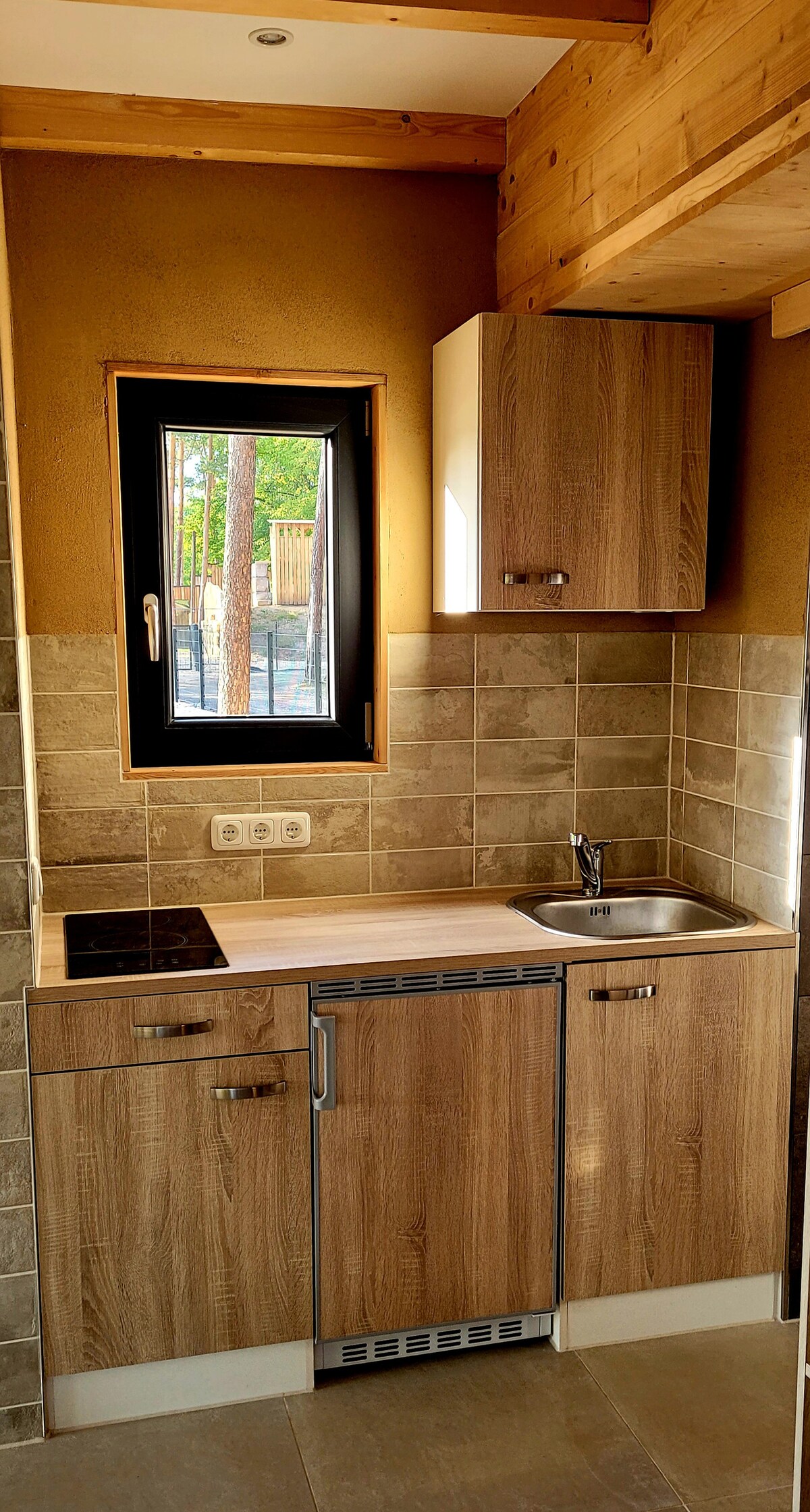 現代小屋直接位於小湖畔。 幾乎可以在大自然中放鬆幾天,然後關閉。 一樓有一張大雙人牀或兩張單人牀。 稍微較低的睡眠地板上有兩張單人牀,可以到達樓梯。 高品質的浴室和配備最必要的小廚房,讓這間迷你屋成為一個絕對舒適的地方。
