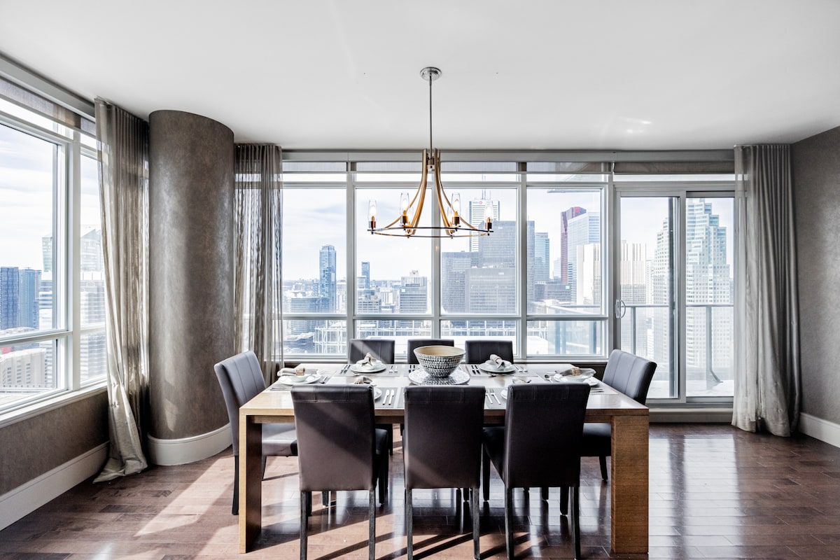 我們為提供5星級飯店般的體驗而感到自豪! ! 公寓大樓內提供免費停車位。 無論您是來城裡參加音樂會、體育活動、商務差旅,還是只是想參觀當地的熱門景點,步行8分鐘即可抵達目的地。公寓附設Scotiabank Arena + Union。 公寓配有1張特大床和2張大床,可舒適地容納大型團體。 立即預訂,裡面有驚喜等著您!