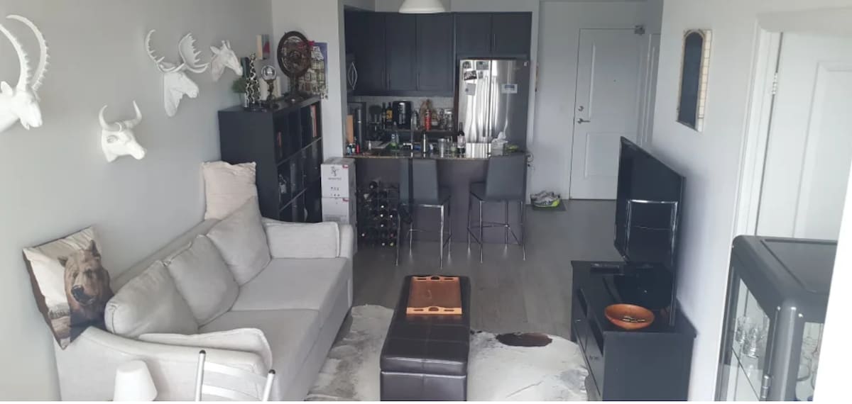 全新翻修的2間臥室+ 2間浴室,景觀美麗。 家外之家,設備齊全! 非常適合藍鳥隊和猛禽隊比賽以及市內任何音樂會 Keurig 提供早晨咖啡 寵物友善和私人停車位 套房內有洗衣機和烘乾機 1GB 高速網路 充氣牀墊 開車2分鐘即可抵達雜貨店、LCBO,開車5分鐘即可抵達湖岸海灘,開車10分鐘即可抵達皮爾遜機場、Budwiser Stage ~2 健身房