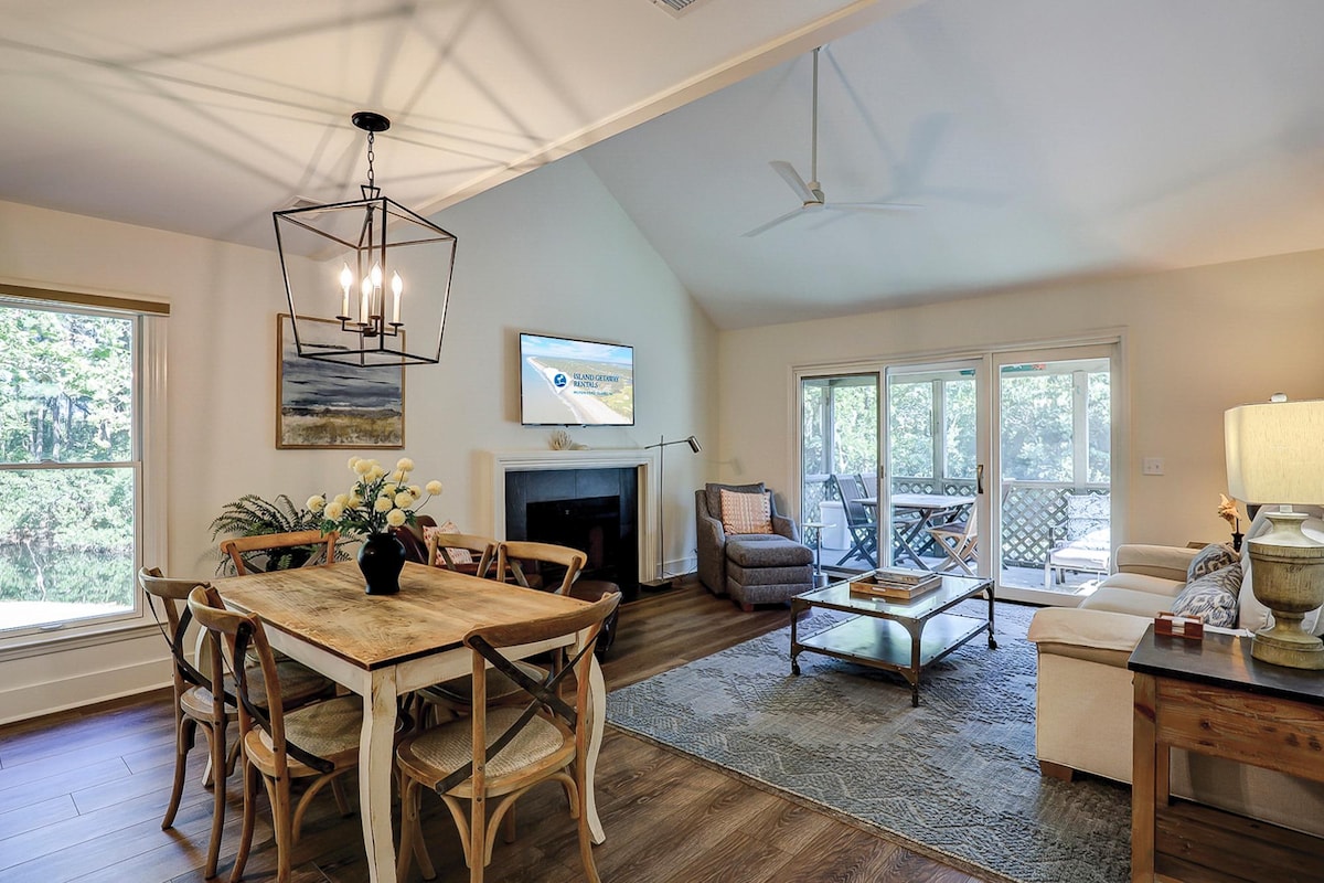 步行5-10分鐘即可抵達原始的希爾頓海灘,在Queen 's Grant of Palmetto Dunes的寬敞別墅放鬆身心。擁有近1500平方英尺的空間和高層天花板,您可以舒適地放鬆。全新的客廳家具,可躺下,兩間臥室都有超棒的特大綠茶記憶泡綿床墊,以及設備齊全的廚房(攪拌機、烤麵包機、慢炖鍋+。)主臥室和客廳通往私人後院露臺,配有烤架、餐桌和海灘配件。
