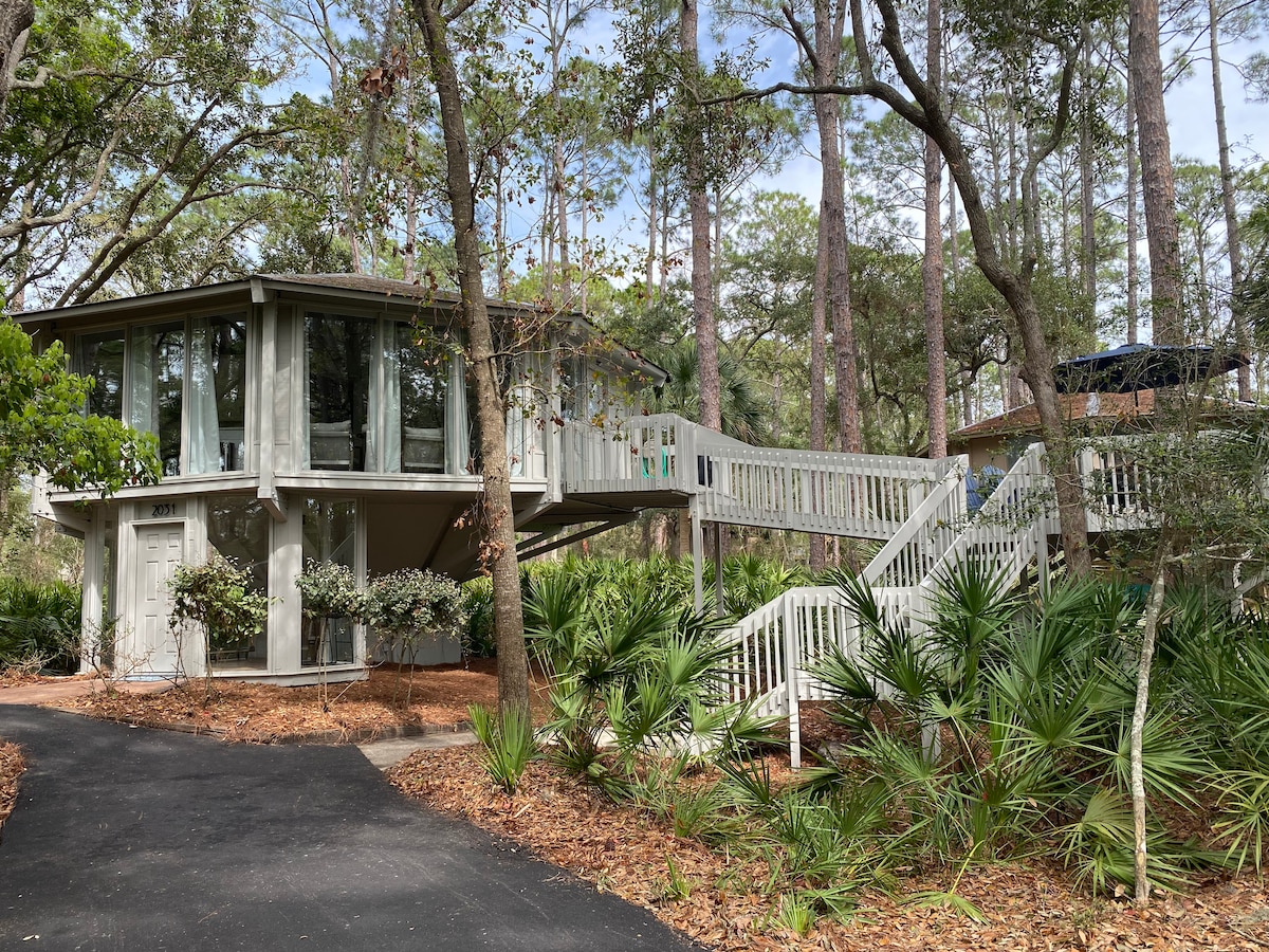 這個獨特的「樹屋」有360度景觀,有海濱和日落景觀。 在鹿島( Deer Island ) ,距離海港城燈塔( Harbour Town Lighthouse )僅幾步之遙,該燈塔以其大型船碼頭、餐廳、商店和高爾夫俱樂部而聞名,是RBC Heritage Classic、PGA Tour Event的體驗。 享受Sea Pines的所有設施,包括南海灘碼頭( South Beach Marina )、海鬆海灘( Sea Pines Beach )和鹹狗咖啡廳( Salty Dog Cafe ) ,距離這裡只有3英裏,有手推車和自行車道。 坐在營火旁欣賞日落。 可欣賞景觀的瓦斯烤爐