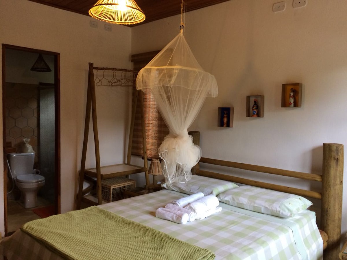 在時尚的地方與全家人一起享受。 生物建造、舒適、美麗的房源,配有火坑和淋浴間! 大後院,花卉花園。 我們靠近瀑布,如Riachinho和Smoke瀑布。 我們距離村莊更遠,提供更多寧靜和與大自然的互動。 1公裏處有市場和商店。