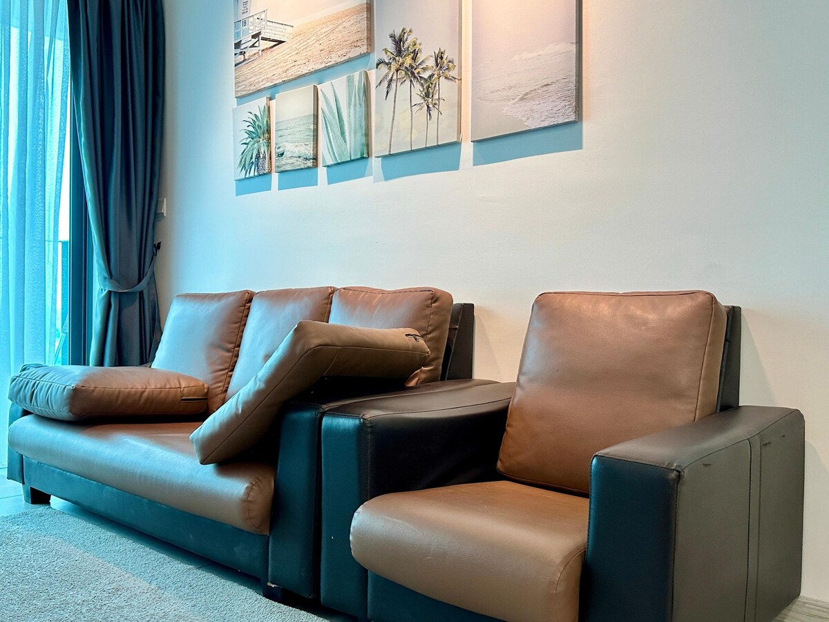Maritime Suites by Comfy ★ Panoramic Seaview ★ Sunrise view ★ Penang Bridge view ★ High floor ★ 5 stars Superhost Comfy Homestay Team ★ Nearest seaview seaside duplex to UNESCO Heritage Core Zone • 1200 square feet • 1 private car park • 300 Mbps WiFi • 30 restaurants, cafes, pubs, Starbucks, Coffee Bean, FamilyMart, 7-Eleven, HappyMart are below our house. • Fully air-conditioned • Tour Packages are available • 5 to 10 minutes drive to Chew Jetty and UNESCO Heritage old town.