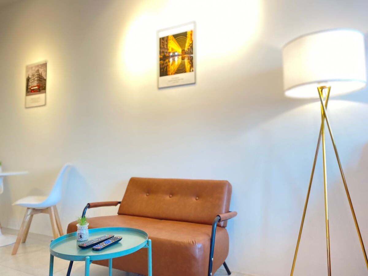 Welcome to Monstera Cozy Home, where we've created a relaxing and comfortable space with a dark Muji-inspired style. Our spacious place can easily fit 6 to 8 people, making it great for families, friends, or anyone looking for a peaceful getaway. It is centrally located in Prai, offering easy access: • 4 mins to Penang Bridge, • 1 min to PLUS Highway • 10 mins to Ferry Terminal, Penang Sentral, and more nearby attractions that just a short drive away.