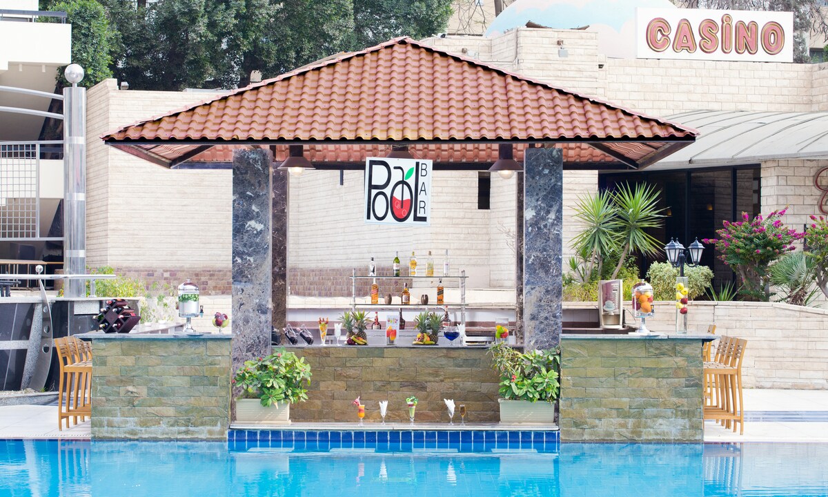 Le Passage Cairo is only 2 minutes from the Cairo International Airport in Cairo’s Heliopolis district. The hotel features fine restaurants, a discotheque and a casino. A free airport shuttle service is available. The rooms at Le Passage Cairo Hotel & Casino include individually controlled air conditioning and satellite TVs. The rooms also have safes, minibars and hairdryers. 24-hour room service is available.