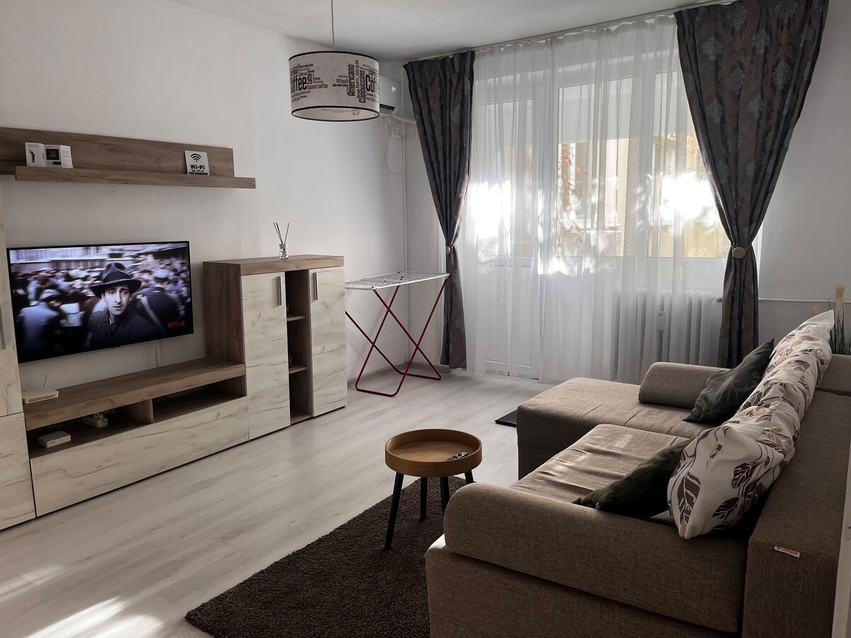 位於布加勒斯特市中心,靠近Daimon Summer Pool、青年公園,距離太陽廣場購物中心(Sun Plaza Mall)幾分鐘路程,是4位成人或獨遊旅客的完美家庭基地,透過地鐵和公共交通工具可輕鬆前往城市的所有景點。最近翻新的公寓配有舒適的雙人床和大型可伸縮沙發、設備齊全的廚房、配有Netflix的現代起居區和陽臺。距離290公尺處還有一個專用停車位。