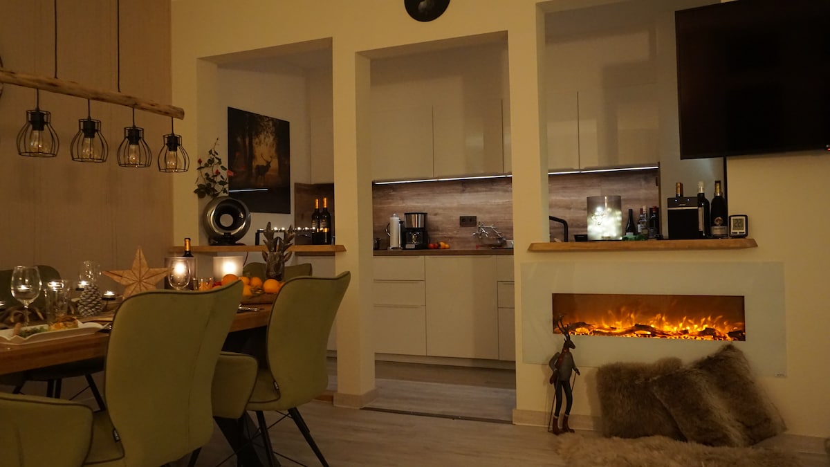 入住卡塞爾市中心時尚奢華的公寓——FeelGood Luxus——位於德國的中心。 → 120 平方公尺的起居空間 →寬敞的開放式客廳和用餐區域 → 高級廚房,配有中島和並排式冰箱,並配有製冰機 →大型木製餐桌 → 2 間現代化浴室,包括一間配有按摩浴缸的豪華浴室 →大露臺,配有室外家具和瓦斯烤架 →非常適合家庭和團體 →中央、安靜的地點,步行即可抵達市中心