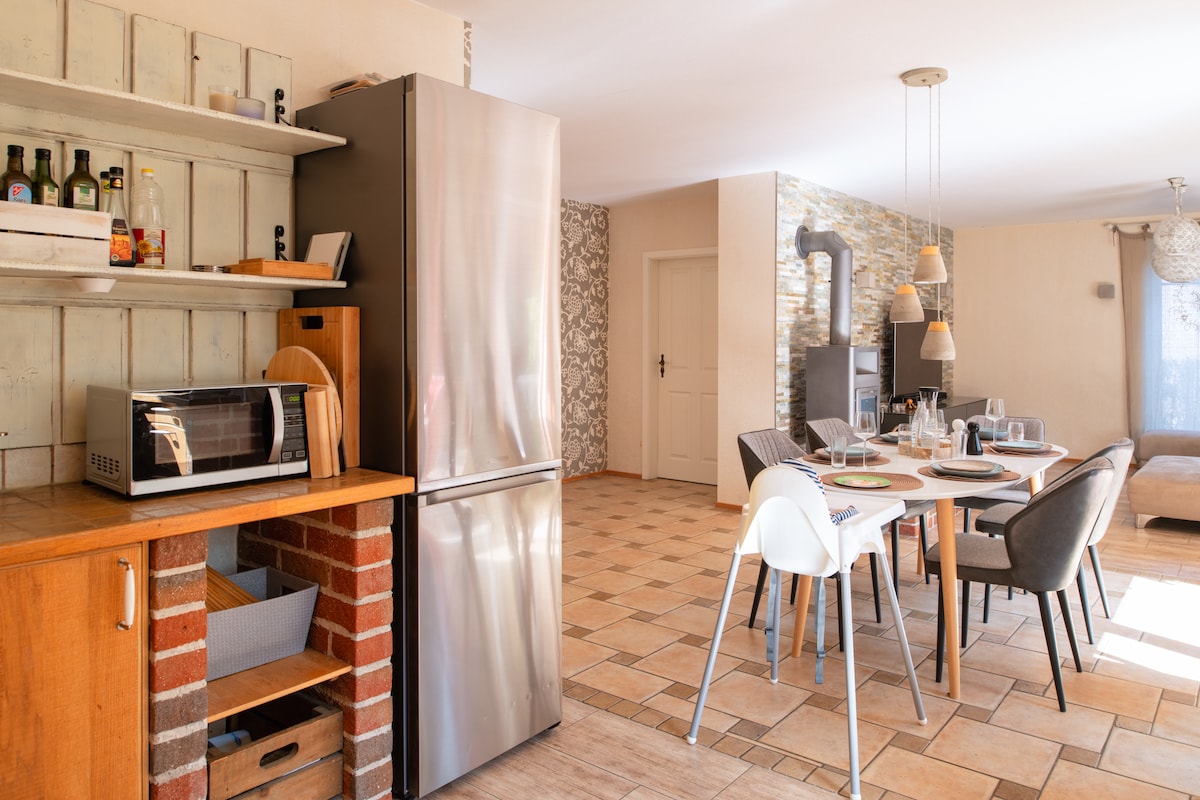 我們出租位於吕根島西部安靜地區的舒適、時尚的度假屋。我們的女兒稱它為「燕子飛行的家庭小屋」,這很貼切。 有 4 間臥室可供成人和兒童使用。 該房屋在 2020 年經過全面翻新,擁有現代化的廚房和兩間漂亮的淋浴間、帶壁爐的休息區和俯瞰馬場和馬棚的露臺。