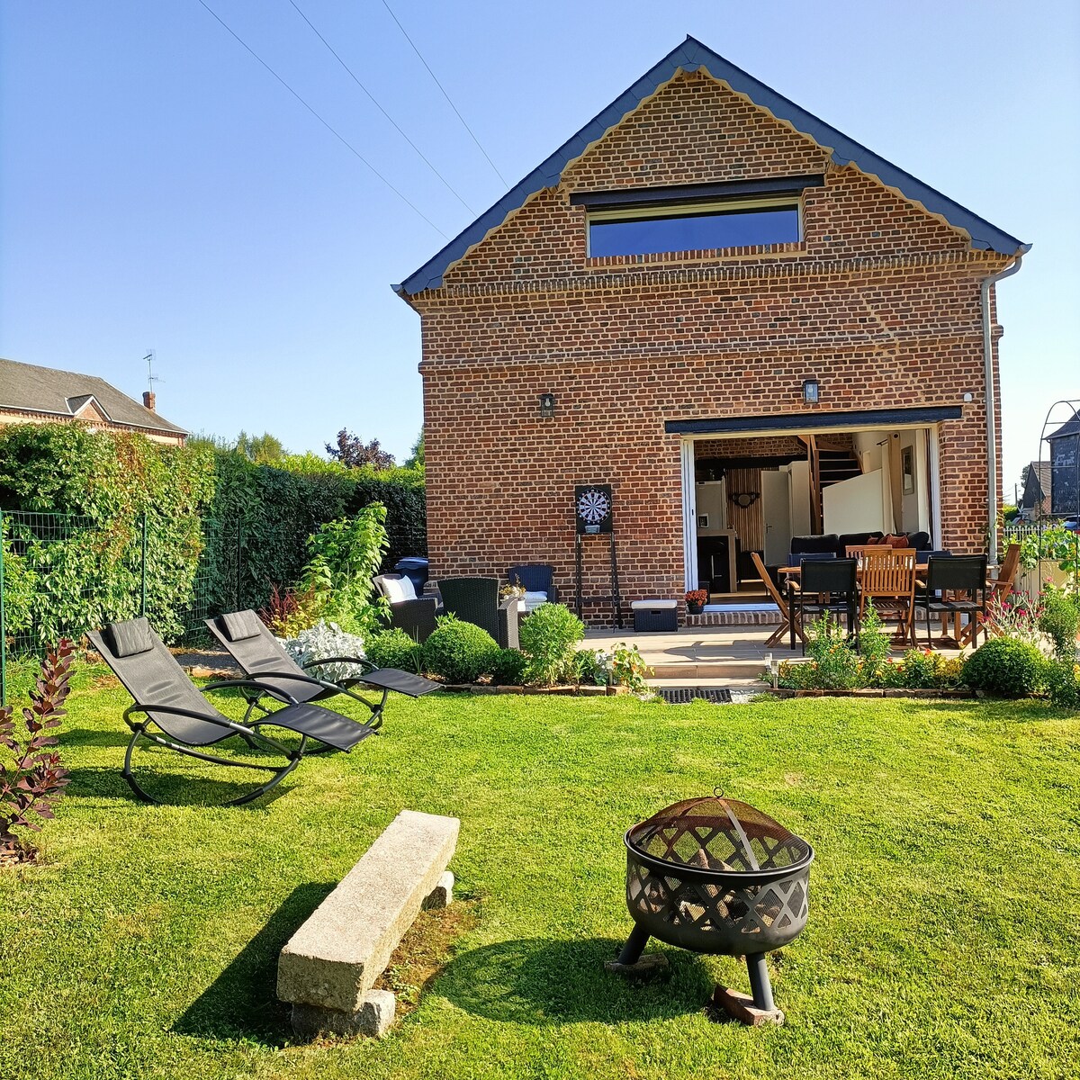 迷人的單層房屋,朝南朝西的燃木壁爐,私人封閉式花園和露臺。 這個可愛的地方坐落在業主房屋的外樓內,坐落在一條安靜的小巷邊緣,有一個大型公園,有樹木、大自然和草地作為鄰居。 這個地方距離Baie de Somme、大海和森林不遠,非常適合情侶或家庭度過週末、度假或遠距休息。