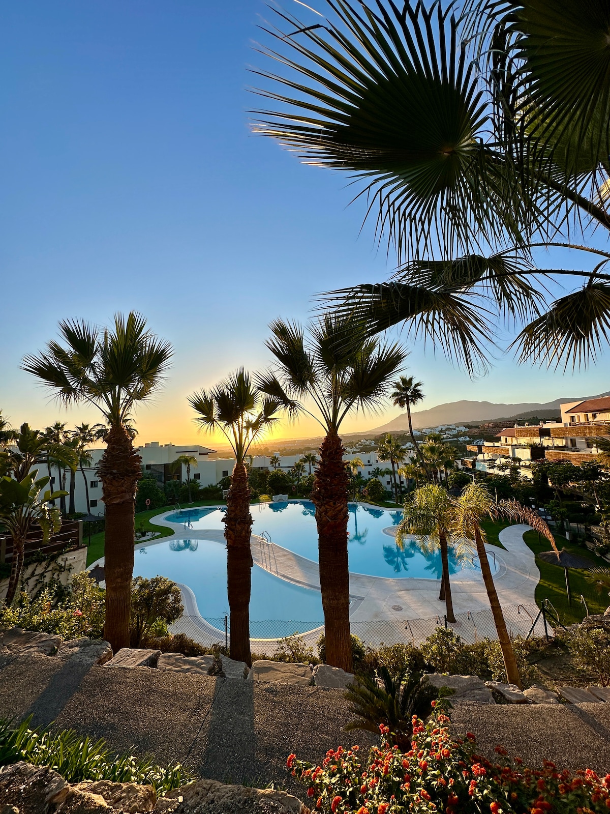 Welcome to your Costa del Sol retreat between Estepona & Marbella - a peaceful escape close to beaches, golf, & vibrant dining! - Sleeps 5 | 2 bedrooms | 4 beds | 2 baths - Shared outdoor pool (June–October) & padel court - Spacious 100 m² private terrace for alfresco dining - Fully equipped kitchen & free Wi-Fi - Private parking & 24-hour security - Beach essentials provided