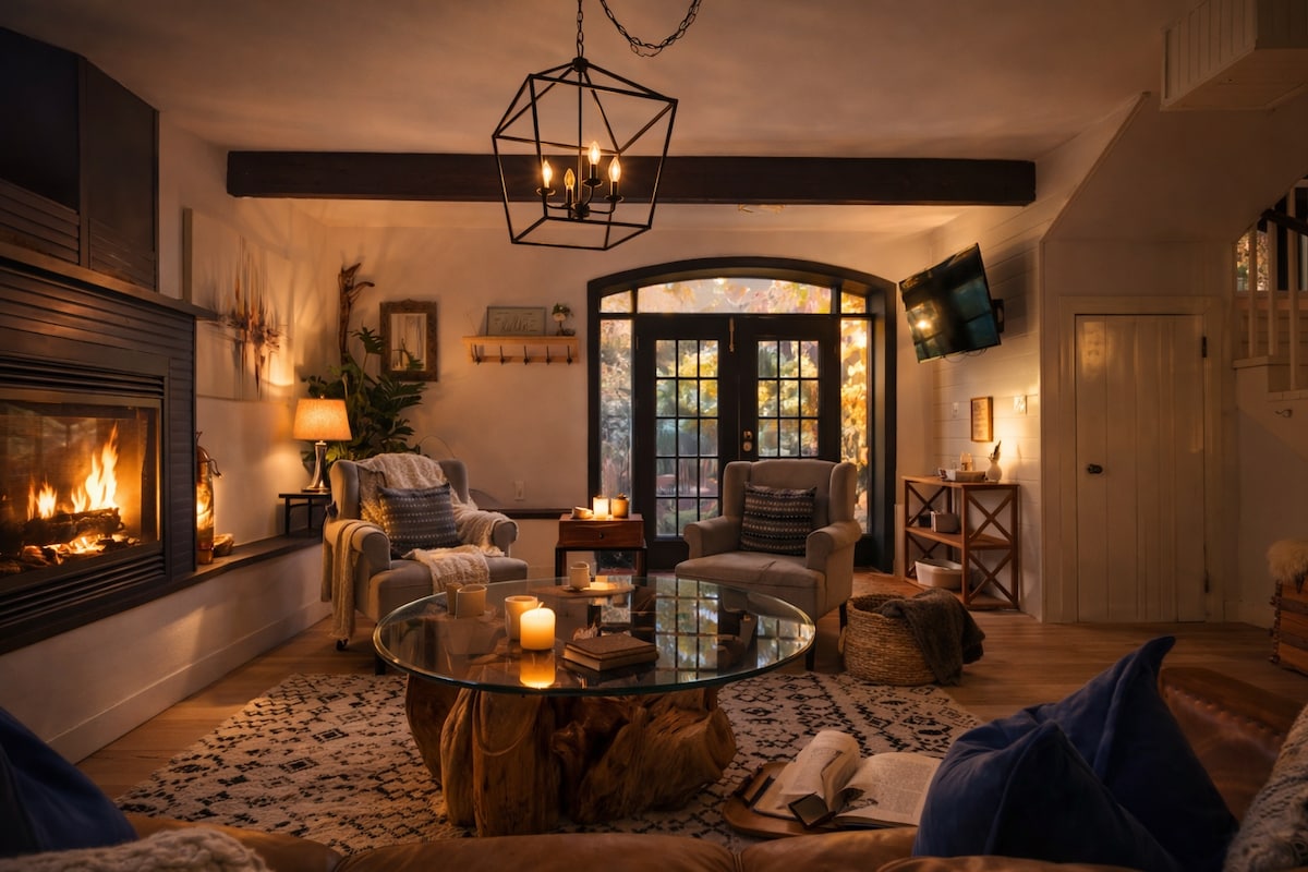 Forest Retreat: Couples Escape w Hot Tub Fireplace