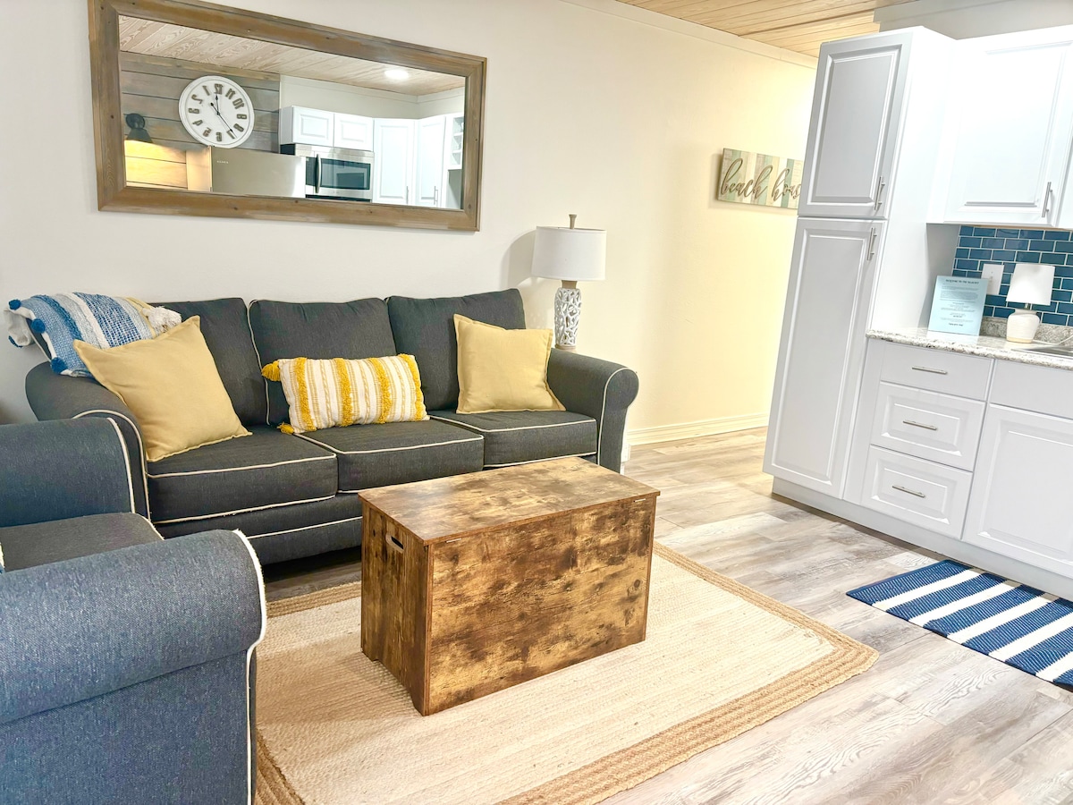 1 Bed 2 Bath (Sleeps 6) NO PETS! Non-Negotiable rates. Location! Easy access to attractions! Direct access on the beach without having to cross the street. Pelican Beach Resort 1004 is a newly renovated 1-bedroom condo with stunning Gulf of Mexico views from your private balcony, an open-concept living area, and comfortable sleeping accommodations for up to 6 guests The fully equipped kitchen is designed with a bar that overlooks the living area for entertaining or enjoying a casual meal.