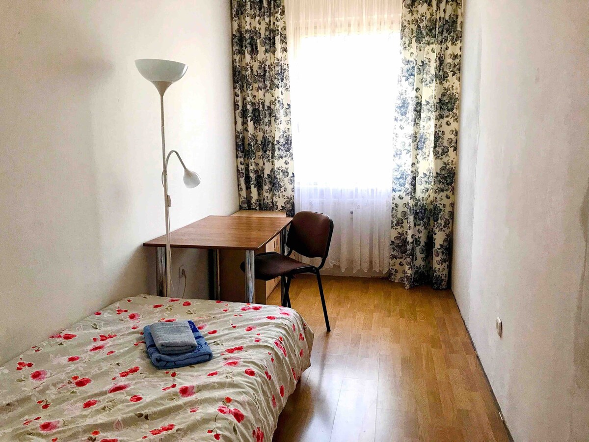 A comfortable cosy room- wide comfy double bed + living room with TV, couch and lots of books and small kitchen with balcony. In a quiet green area of Bratislava, not far from the city centre with good connection from the train station and airport. Family friendly.