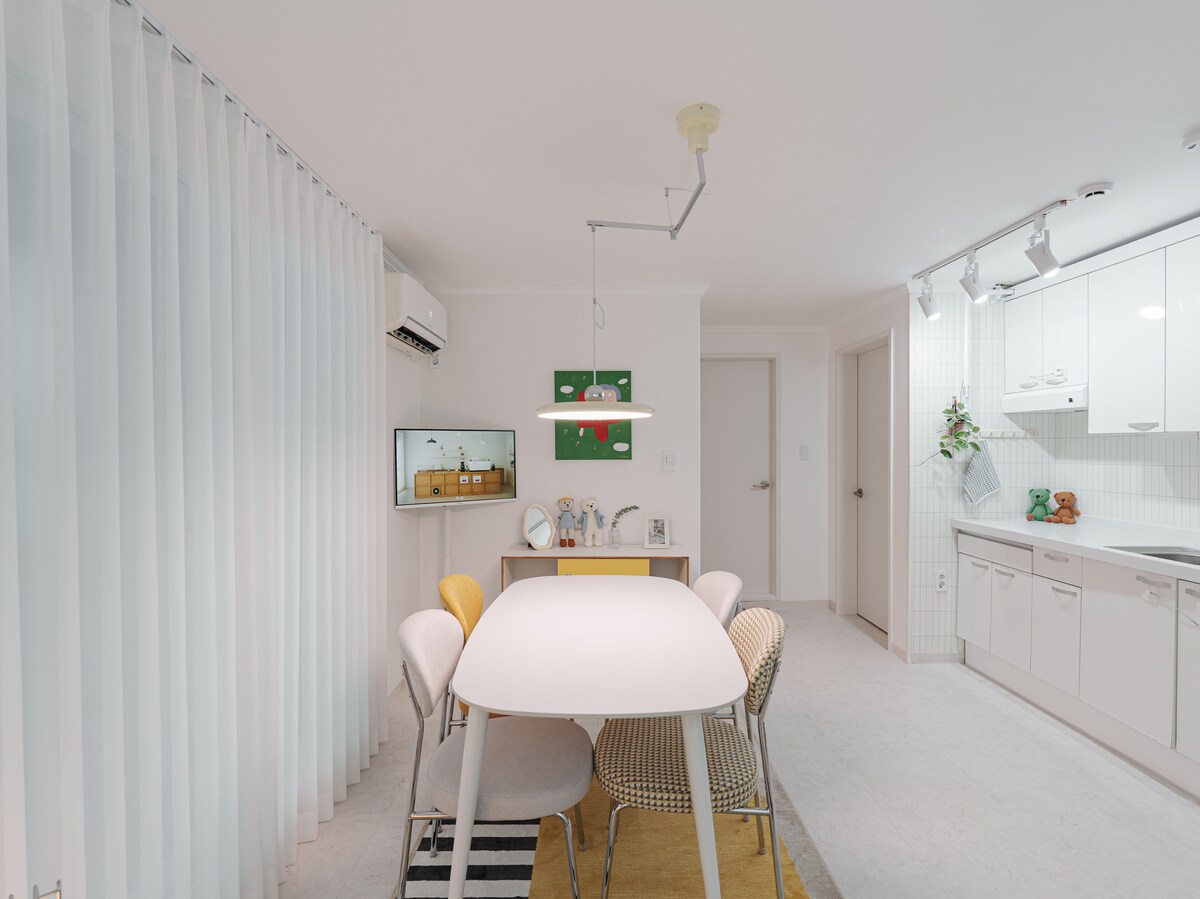 在 D.1881 享受 “温暖又安静空间中的休息” -位于大学区附近,安静又安全的住宅区 -可轻松前往首尔各大主要旅游景点 每个房间均配备空调 & 冬天也有温暖的浴室 可供4–5人家庭一起用餐的圆形餐桌 请在酒店级寝具中享受舒适的休息时光 为保持清洁,每次入住都会更换床品并进行专业清扫 🔴5人入住说明 我们将为第5位客人准备单独的床垫和被褥套装 📌首尔旅行的最佳位置 乘坐机场巴士(6002路)或地铁(机场铁路) ➡️ 从仁川机场到住宿约需1小时 – 42公里 (根据交通情况可能会有所变化) 梨花女子大学站 机场巴士6002路站(步行5分钟) 地铁2号线 梨花女子大学站(步行5分钟) 地铁2号线 新村站(步行13分钟) 地铁6号线 大兴站(步行13分钟) 从弘大入口站到梨大站(地铁约3分钟) 到江南、光化门、圣水、首尔站(KTX)等地,公共交通30分钟内可达
