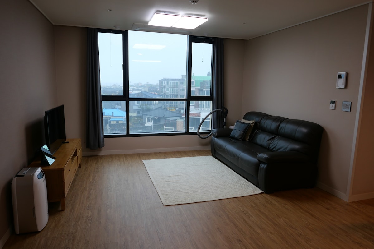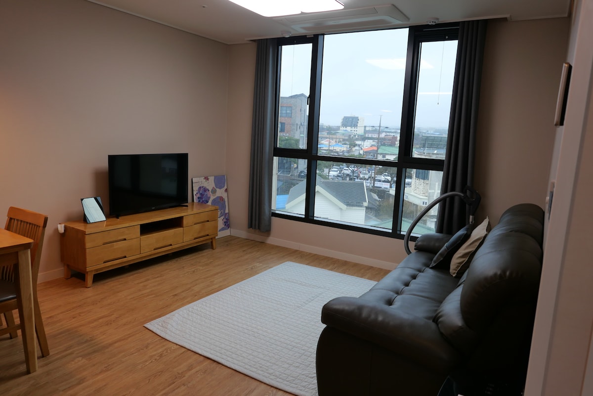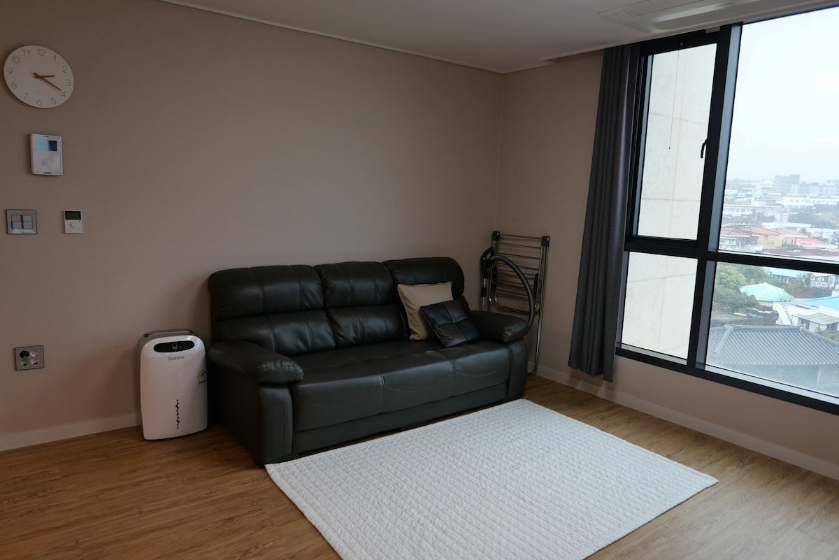 ★WELCOME TO POEMASTAY JEJU!★ POEMASTAY is a rhythmical place which has a cheerful vibe during the day and also has a calm night for your relaxation. Guests can enjoy the view of beautiful "BIYANGDO" (a volcanic island) from all the terraces located in POEMASTAY. POEMASTAY promises to provide clean and neat accommodation, and warm services to your family and loved ones. POEMASTAY 1 BEDROOM APARTMENT B 1 bedroom, 1 bathroom, fully equipped kitchen & living room