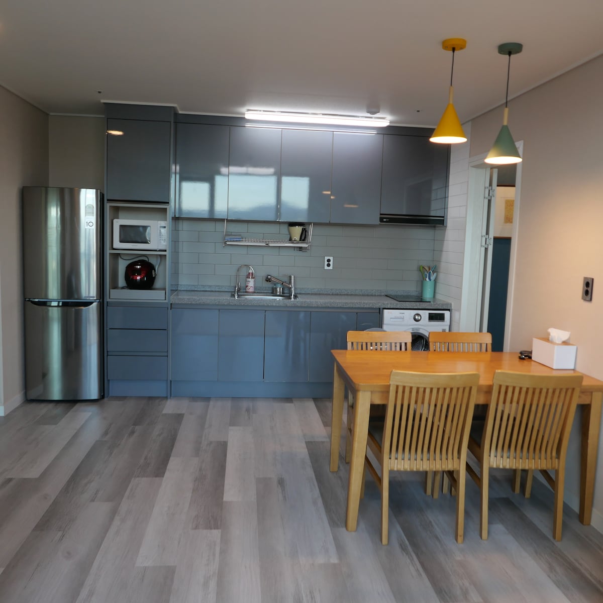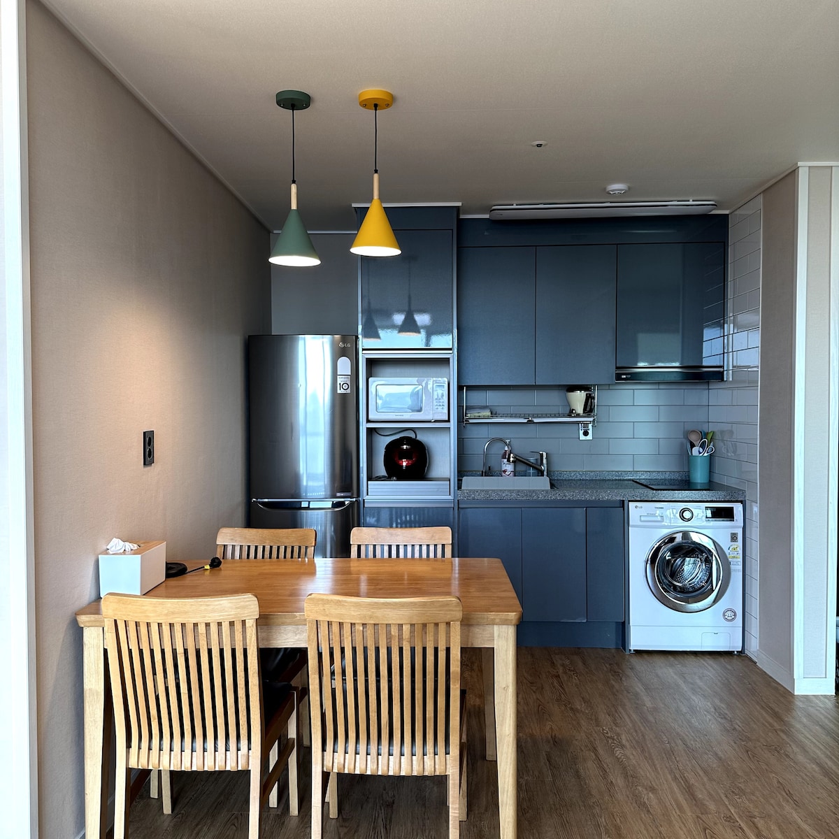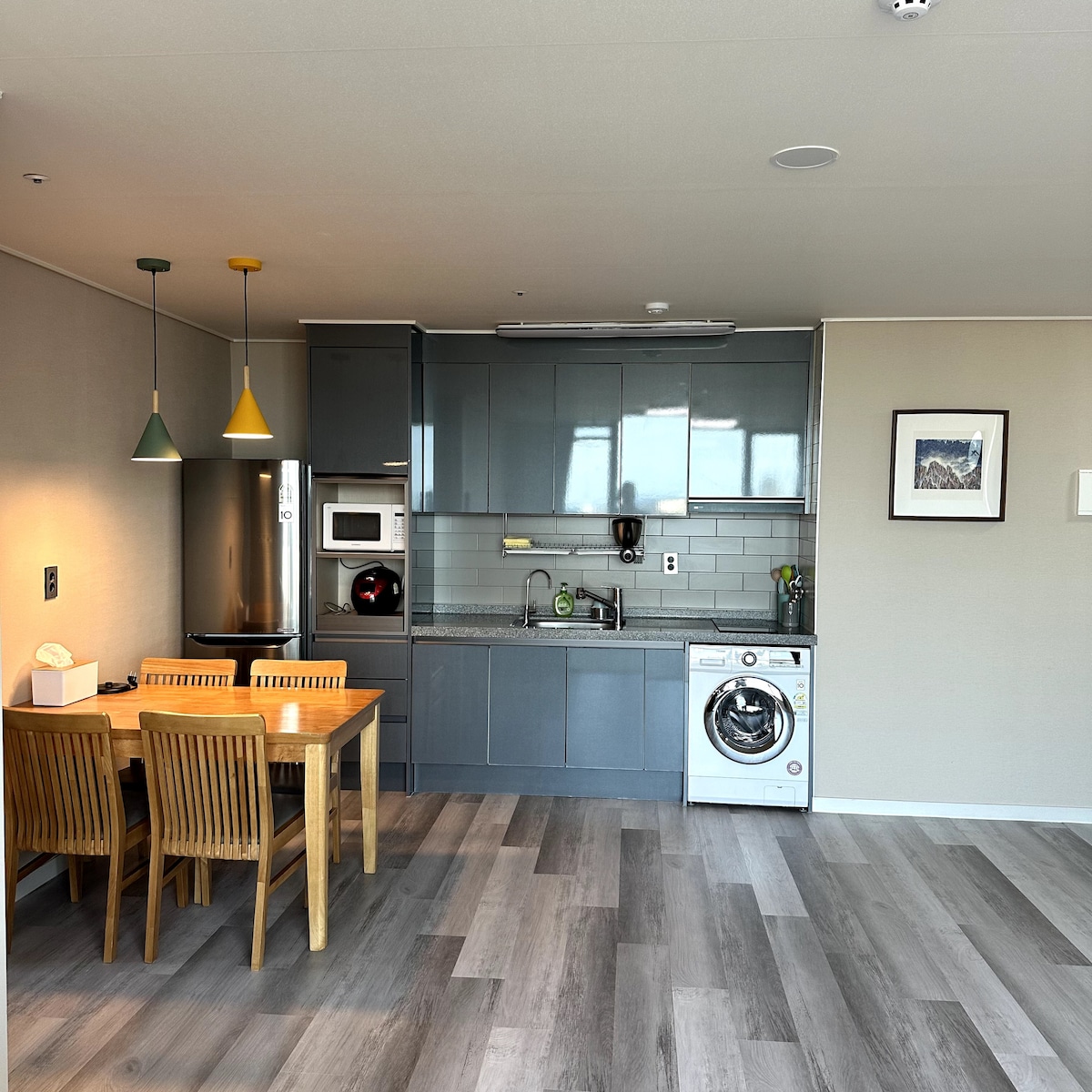 ★WELCOME TO POEMASTAY JEJU!★ POEMASTAY is a rhythmical place which has a cheerful vibe during the day and also has a calm night for your relaxation. Guests can enjoy the view of beautiful "BIYANGDO" (a volcanic island) from all the terraces located in POEMASTAY. POEMASTAY promises to provide clean and neat accommodation, and warm services to your family and loved ones. POEMASTAY 1 BEDROOM APARTMENT B 1 bedroom, 1 bathroom, fully equipped kitchen & living room