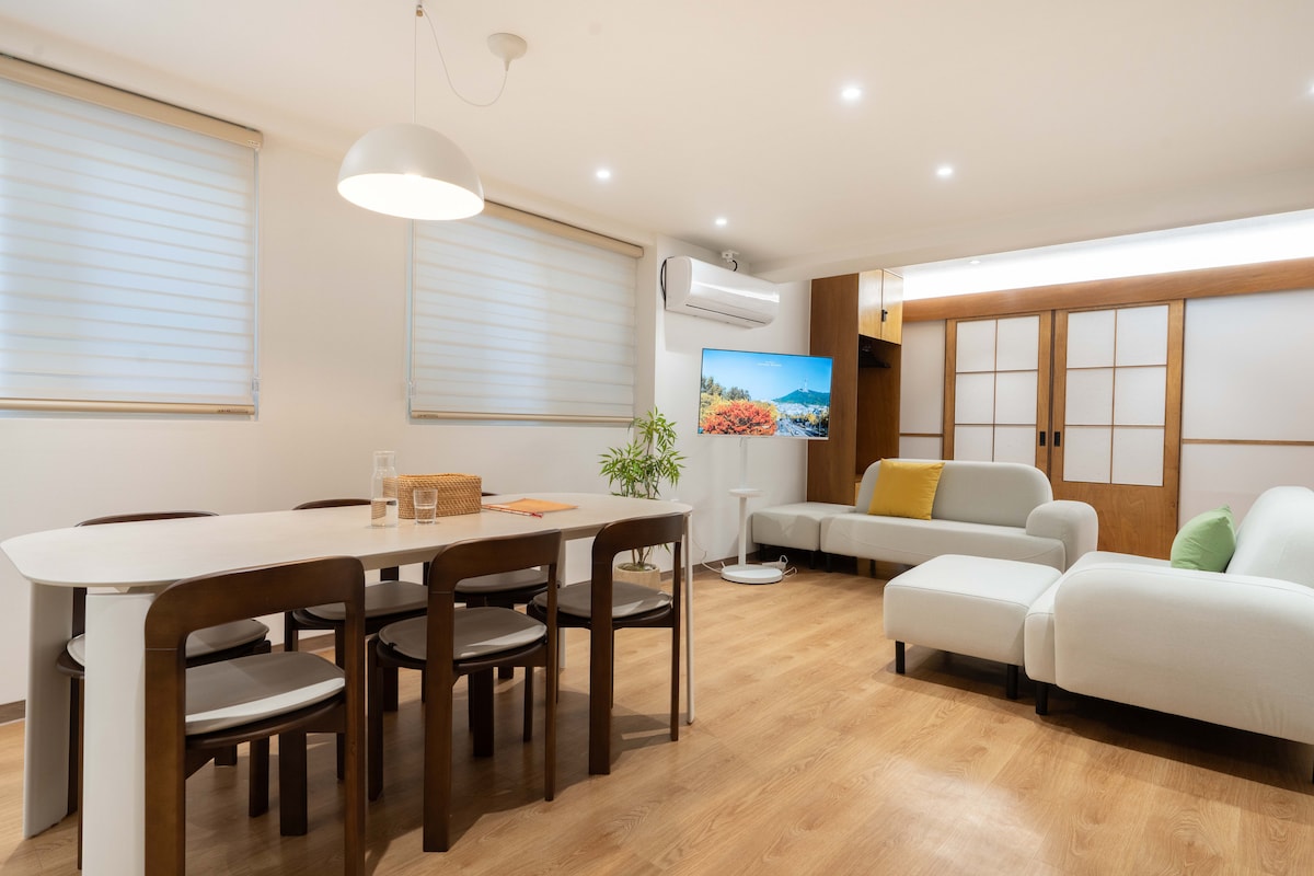 首爾站、忠正路8分鐘#機場巴士2分鐘#3R6B#最多10人#飯店式床上用品#乾淨#韓國遊戲、茶道體驗