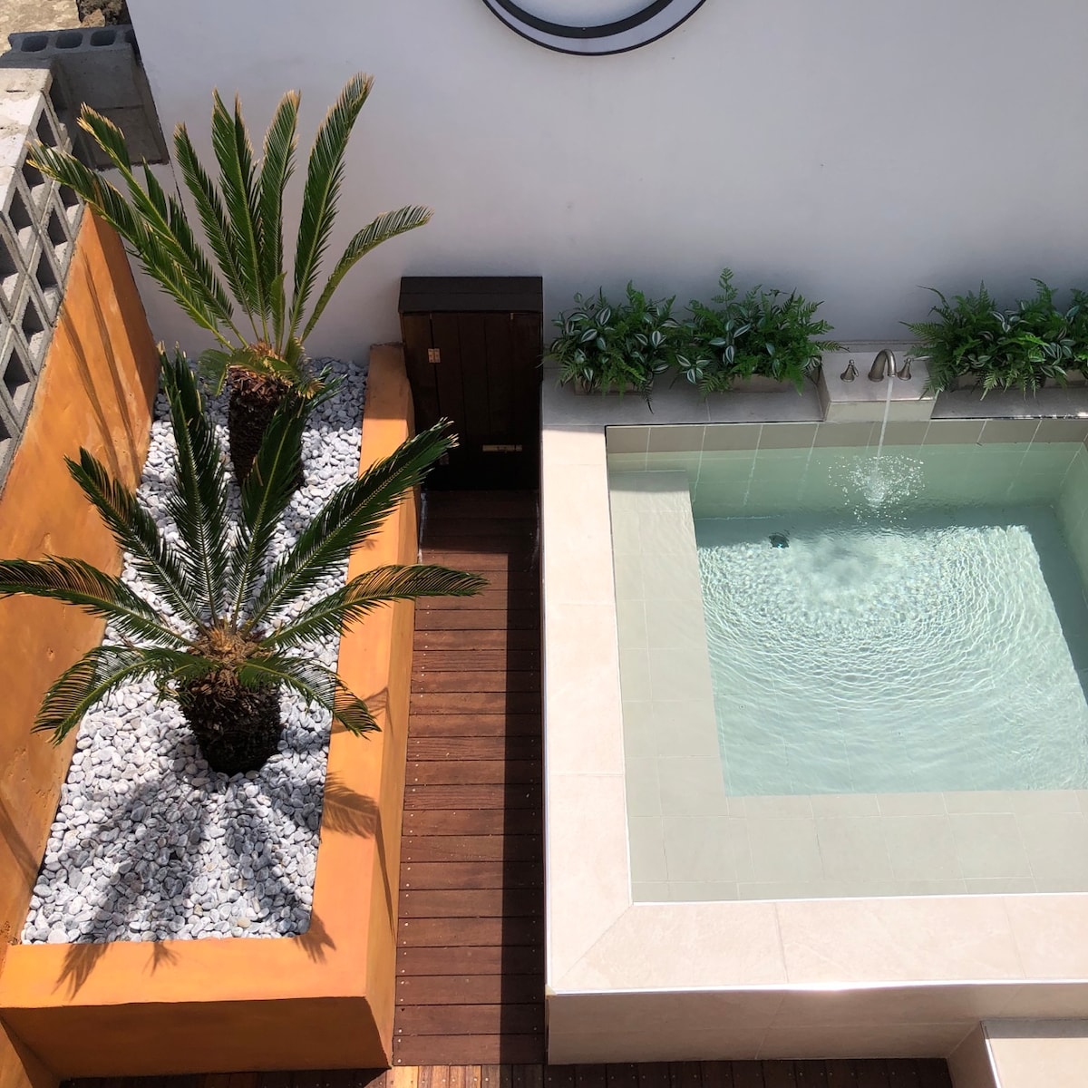全年开放的温泉按摩浴缸+私人影院+黑胶音乐+自助烘焙早餐 房屋内部由四个独立空间组成: 房间1、2:配有大床的卧室 房间3:配备LG投影仪和音响的专属影院 房间4:与厨房分开的用餐区 最多可入住5人(包括婴幼儿),建议4位成人入住(不可5位成人)。 距离城山日出峰仅10分钟车程,沿海公路驾车风景优美。 在济州自然中,享受片刻宁静与悠闲。 结束一天的旅程后,在户外按摩浴缸中放松身心, 然后在私人影院里看电影,听着黑胶唱片,喝上一杯冰啤酒。 这是属于你的特别假期空间, 远离城市喧嚣,尽情享受属于自己的静谧时光。