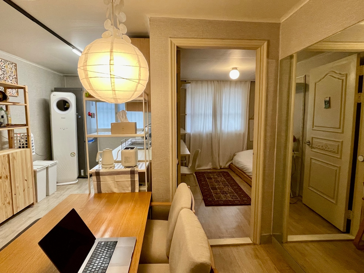 韓屋住宿,姐姐家 雖然像我的家 卻又不是自己家的空間。 極簡韓屋住宿 放下疲倦的身體和心靈。 細節感動人心。 insta @ unnie_house_ English / 日本語 從仁川機場乘坐6002號機場巴士,即可抵達房源,車程3分鐘。 房源距離巴士站和地鐵站(新設洞站)非常近,步行3分鐘即可抵達。 房源附近有連接清溪川的溪流,非常適合散步。 交通非常方便,是遊覽首爾市中心的好地方:) _