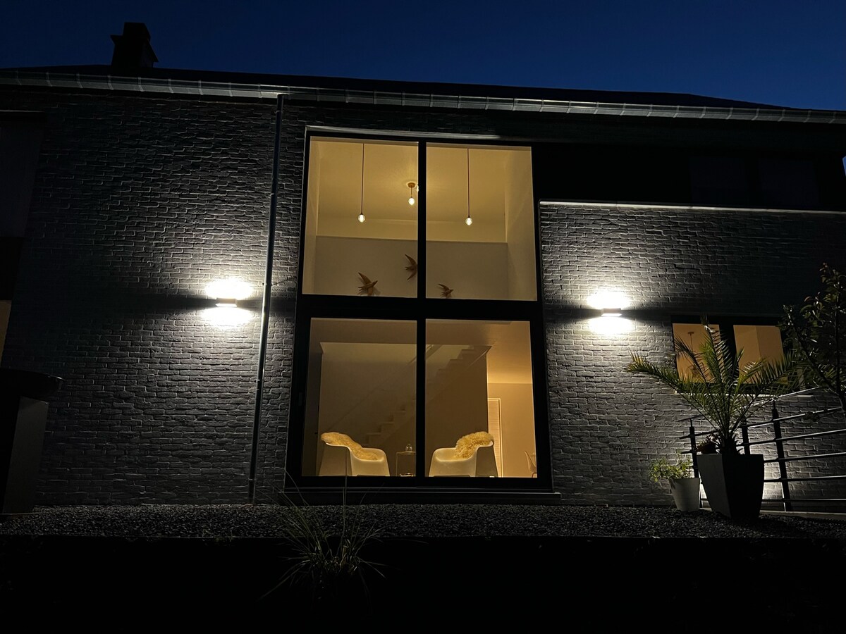 A seulement 1.3 km du centre de la plus petite ville du monde. Profitez du calme de la campagne tout en étant à 2 minutes de l'effervescence des bars et restaurants. L'Orée de Durbuy, vous offre une vue exceptionnelle grâce à sa grande baie vitrée de 5 mètres. Vous profiterez d'une salle de bain privative dans chacune des chambres, d'un bain à bulles, d'une cuisine avec électroménagers haut de gamme, d'une borne de recharge pour votre voiture. Soyez les bienvenus chez nous.