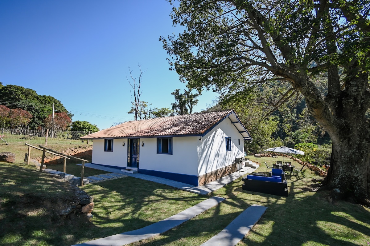 Chalé ecológico e rústico, com lareira e fogueira