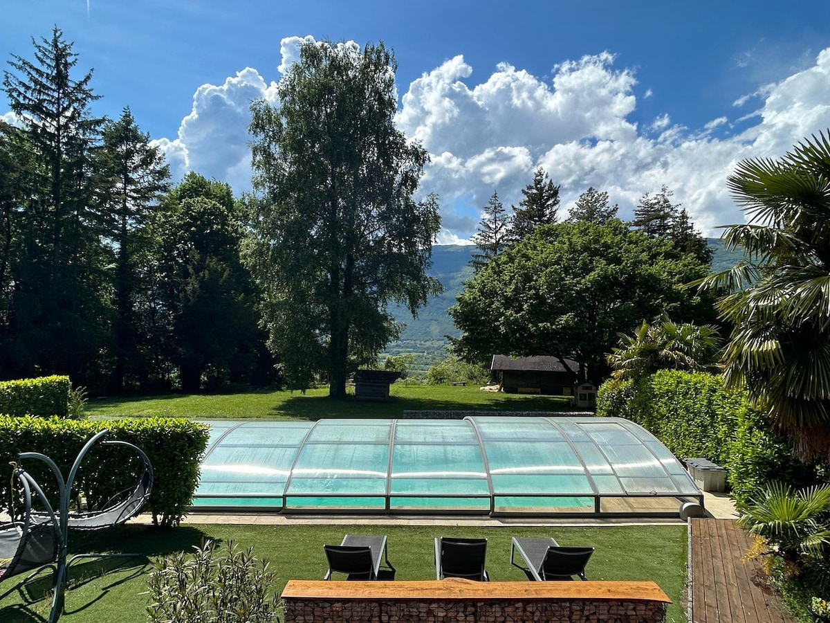 由室內設計師設計的 4 星級 42 平方公尺家具。 裝飾精心設計,充滿現代「山」的精神。 住宿舒適實用,並設有私人戶外空間。 非常適合兩人入住(不適合嬰兒和幼兒)。 小屋位於魯米利 (Rumilly) 高地,四周環繞大自然,非常安靜。 它位於法國兩個最美麗的湖泊之間。 距離安錫 (Annecy) 和艾克斯萊班 (Aix-les-Bains) 僅 25 分鐘路程。