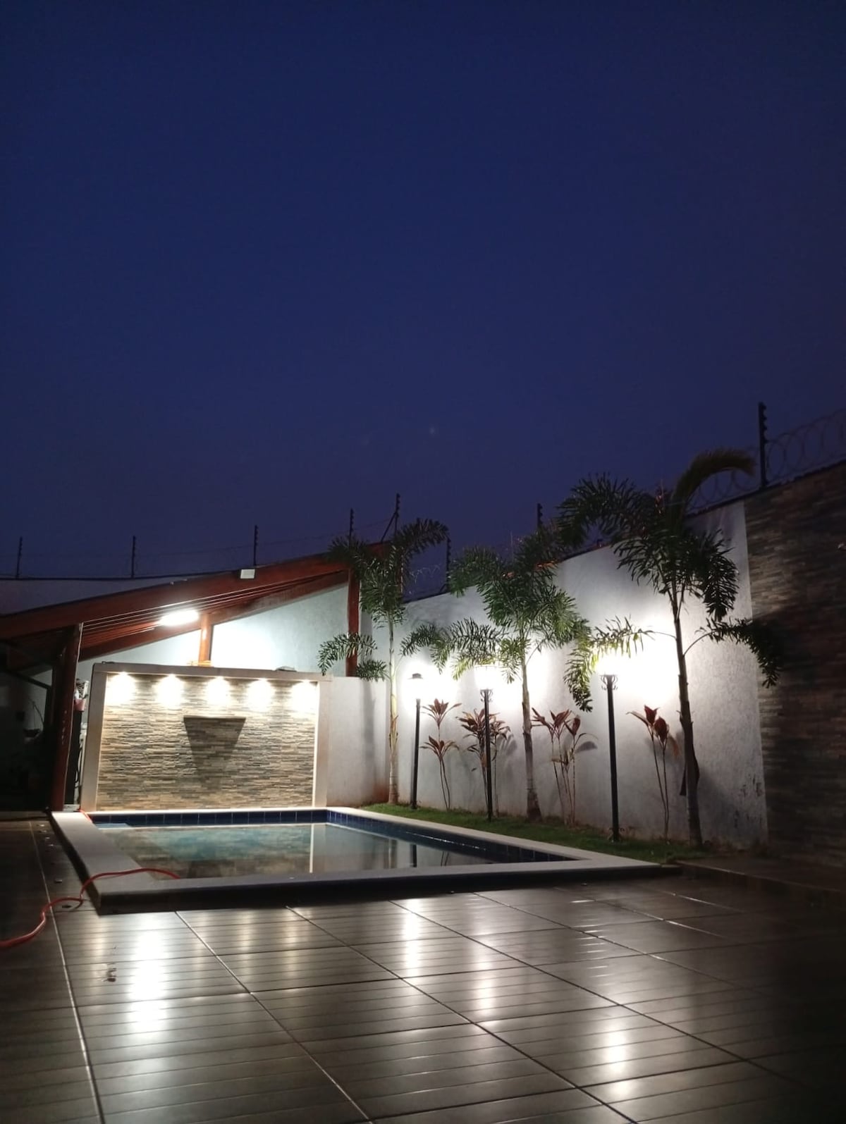 Chácara非常適合親朋好友休閒。 靠近市區,有非常好的鋪面通道。 配備燃木壁爐、電烤箱和爐台的完整廚房。空氣炸鍋和啤酒廠。 綠地綠意盎然,背景有條溪流。 房源配有警報器和自動門。 有蓋陽臺,面積 130 平方公尺。 四間空調臥室、三間室內浴室和兩間室外浴室。 我們有WiFi和電視,可收看BTV。