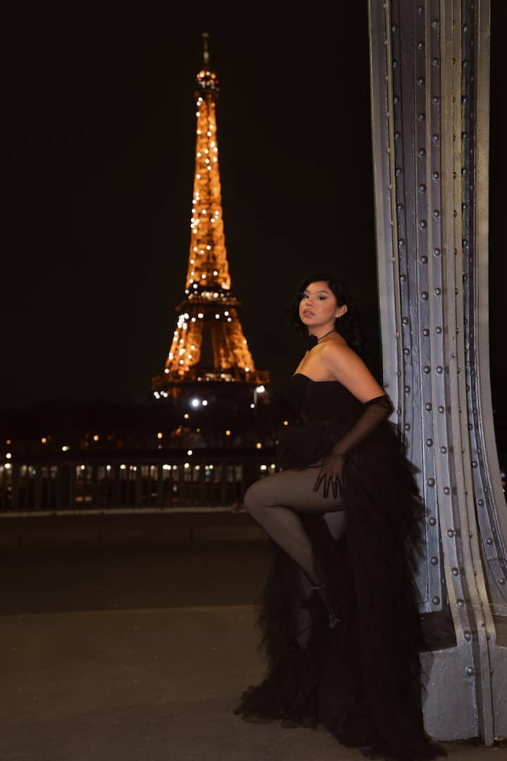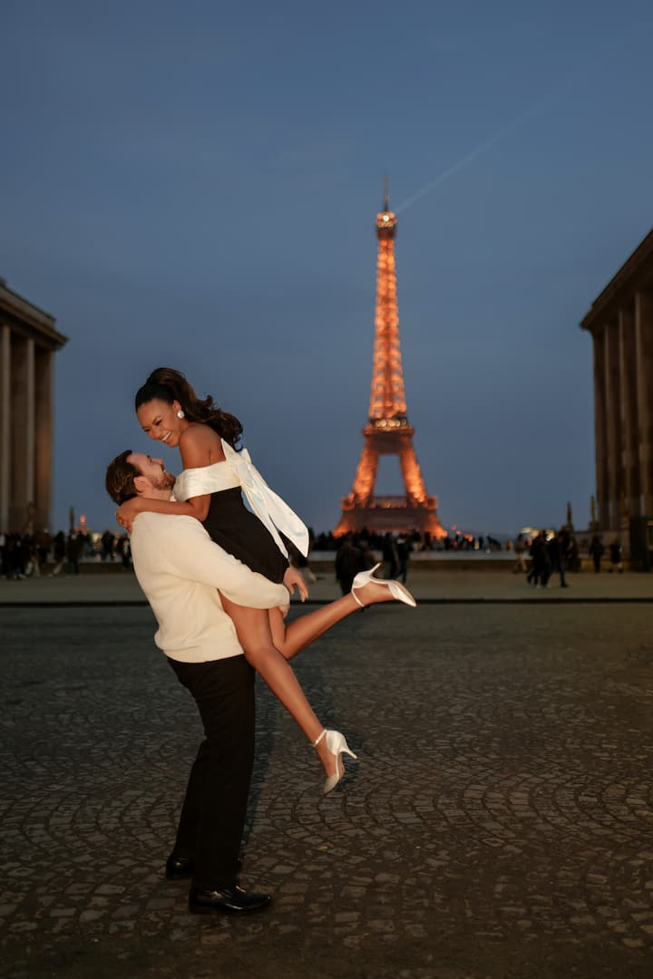 在標誌性的比爾哈基姆大道拍攝,以燈火通明的艾菲爾鐵塔為背景(Sparkles 只提供 1 小時的套裝)
