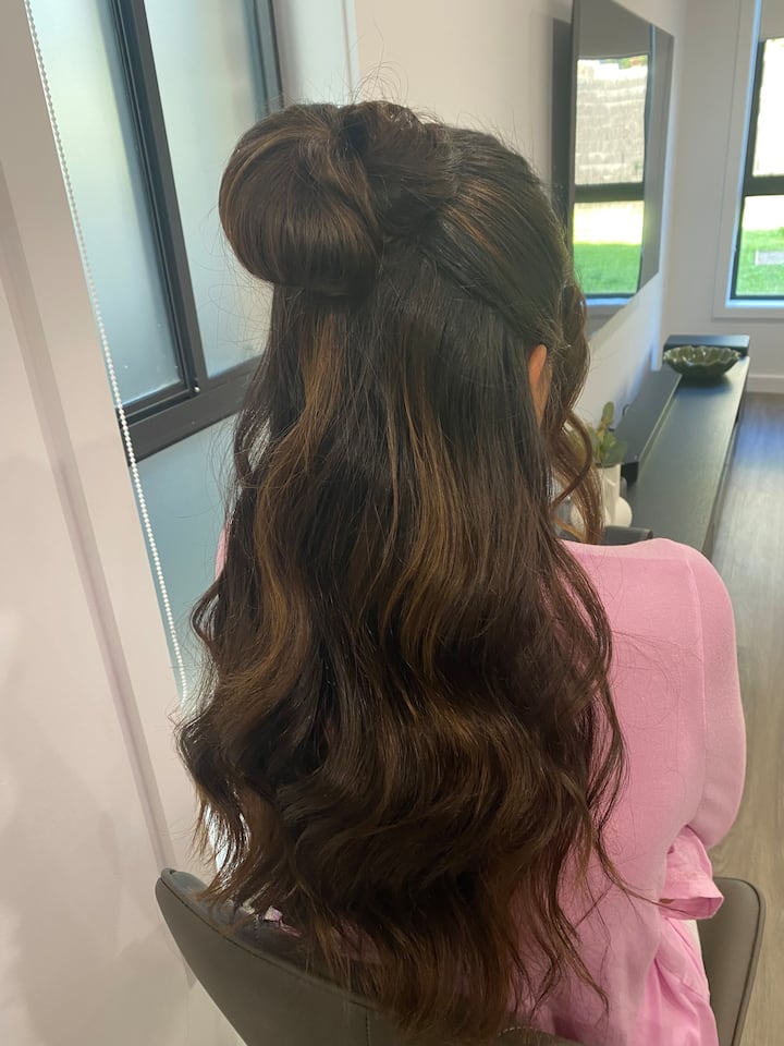 抵達時,頭髮已經洗好,並選擇波浪或直髮,打造簡單而精緻的造型。