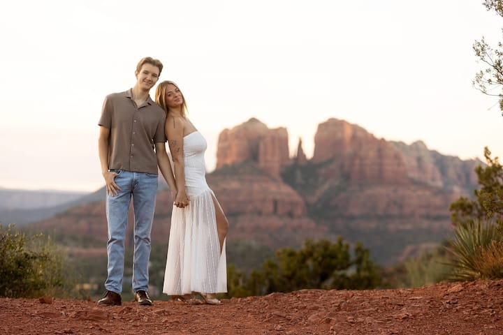 讓我們慢慢來,把事情做好。整整一個小時,可以探索多個地點,嘗試不同的造型,捕捉那些完美瞬間,而無需匆忙趕路。無論您是慶祝週年紀念日、與家人團聚,還是僅僅想要拍攝令人驚豔的度假照片,我們都能為您創作出真正展現您個性的照片。您將獲得所有數位文件,種類繁多,甚至可能發現一些您以前不知道的亞利桑那州景點。輕鬆的節奏,實實在在的效果。